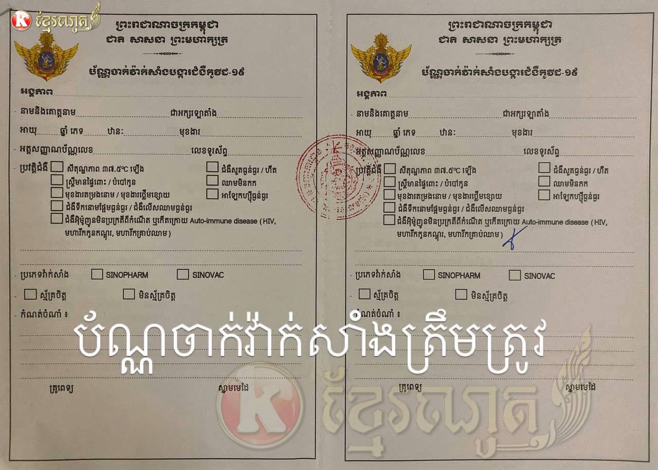អាវុធហត្ថខណ្ឌមានជ័យ ឃាត់ខ្លួនជនសង្ស័យ២នាក់ ករណីលួចកូពីប័ណ្ណចាក់វ៉ាក់សាំង លក់ជូនពលរដ្ឋ ដោយ១សន្លឹកតម្លៃ…