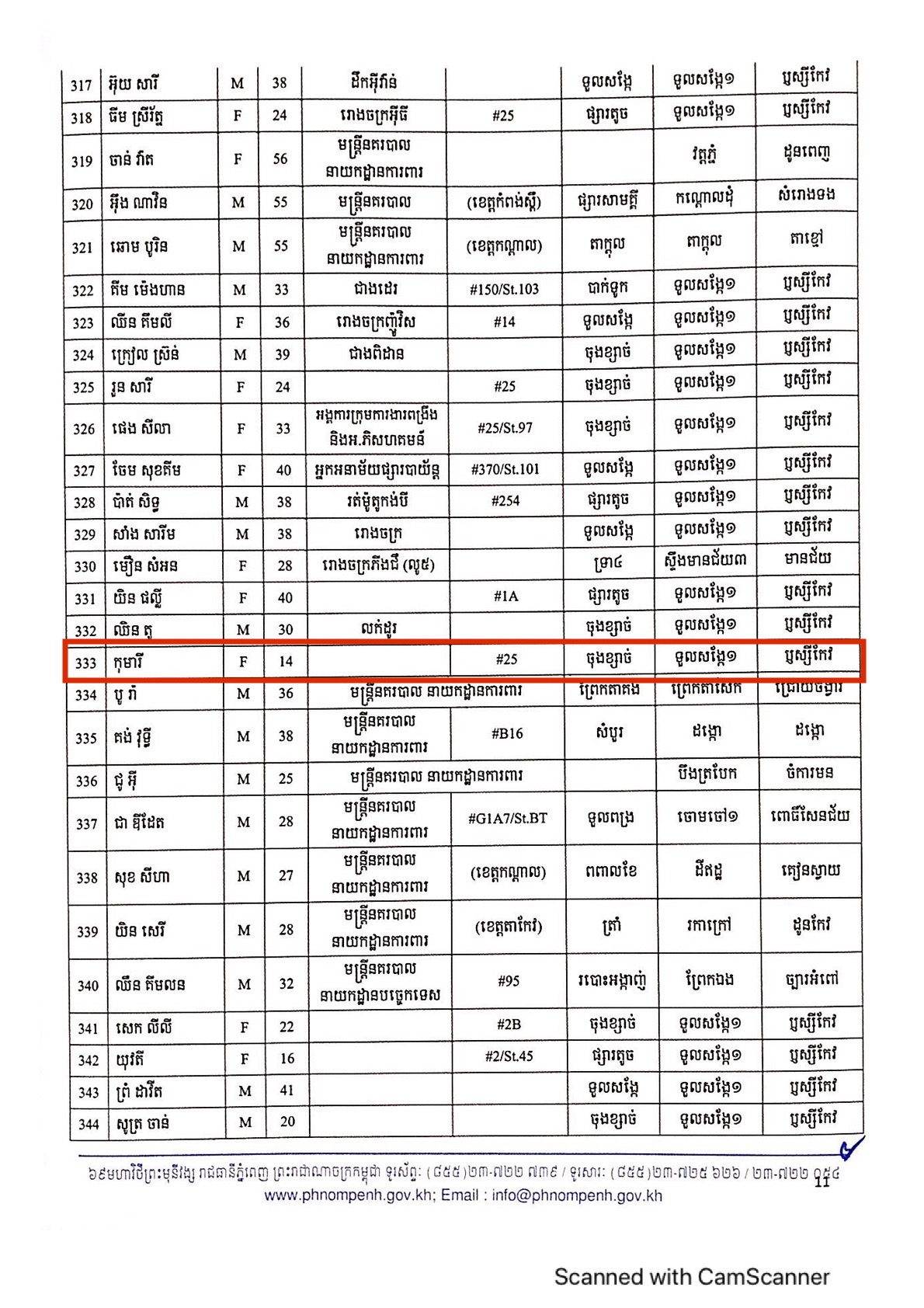 អត្តសញ្ញាណអ្នកជំងឺកូវីដ ដែលរដ្ឋបាលរាជធានីភ្នំពេញបង្ហាញថ្ងៃនេះ មានកុមារតូចៗចំនួន៣៣នាក់បានឆ្លងកូវីដ១៩