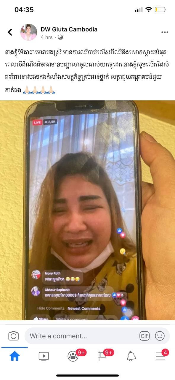 យ៉ាងណាមិញ យោងតាមផេកហ្វេសប៊ុកឈ្មោះ Makara Mom តំណាងចែកចាយធំ DW ប្រចាំបឹងសាឡាង បាន Live វីដេអូបណ្ដើរយំបណ្ដើរ ក្រោយត្រូវចោរគាស់ផ្ទះយកទូដែកអស់រាប់សែនដុល្លារ បានយំស្រែកឲ្យជួយរកដំណោះស្រាយដើម្បីឲ្យគាត់បានទទួលរបស់របររបស់គាត់មកវិញ កាលពីយប់ថ្ងៃទី១១ ខែឧសភា ឆ្នាំ២០២១នេះ ។