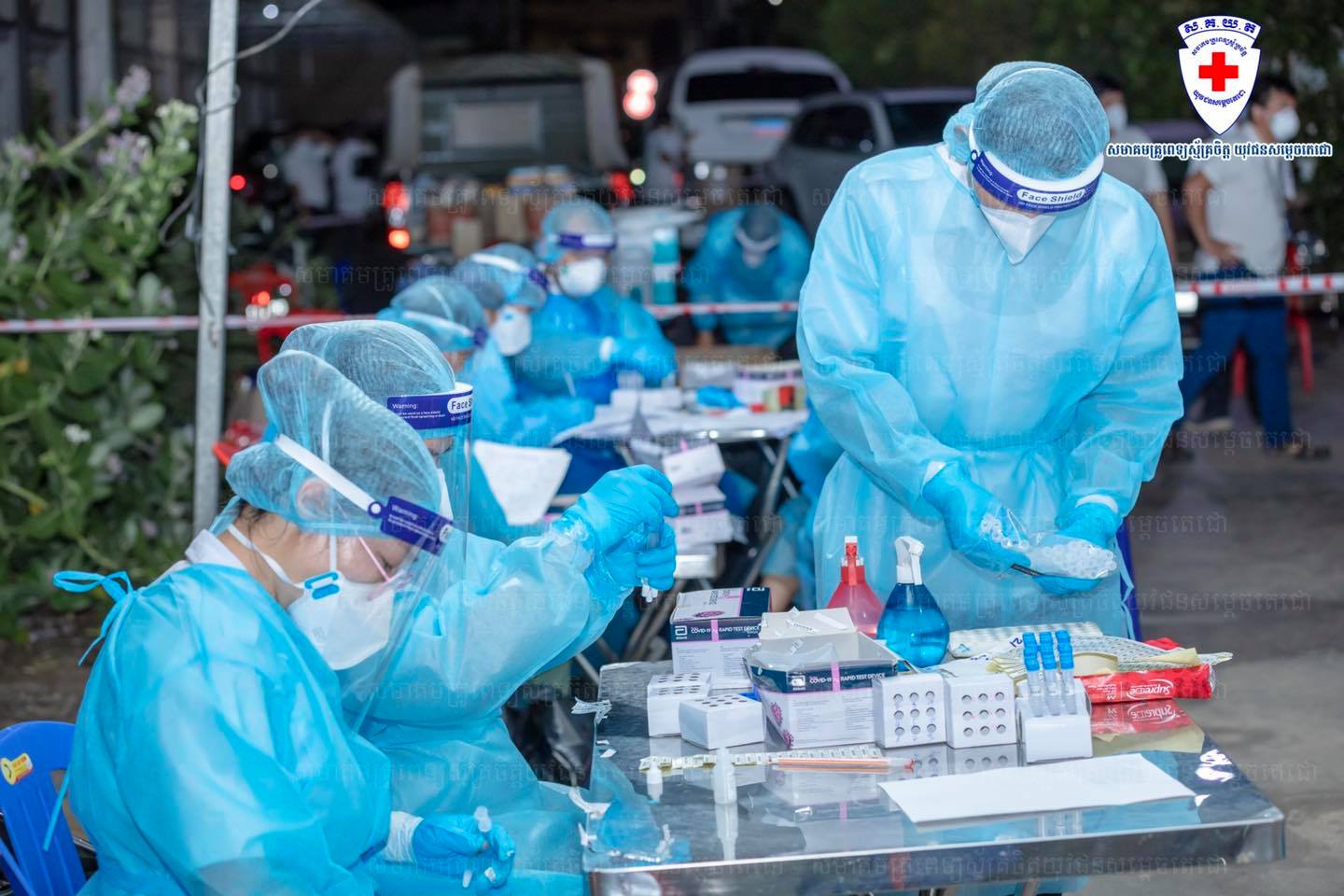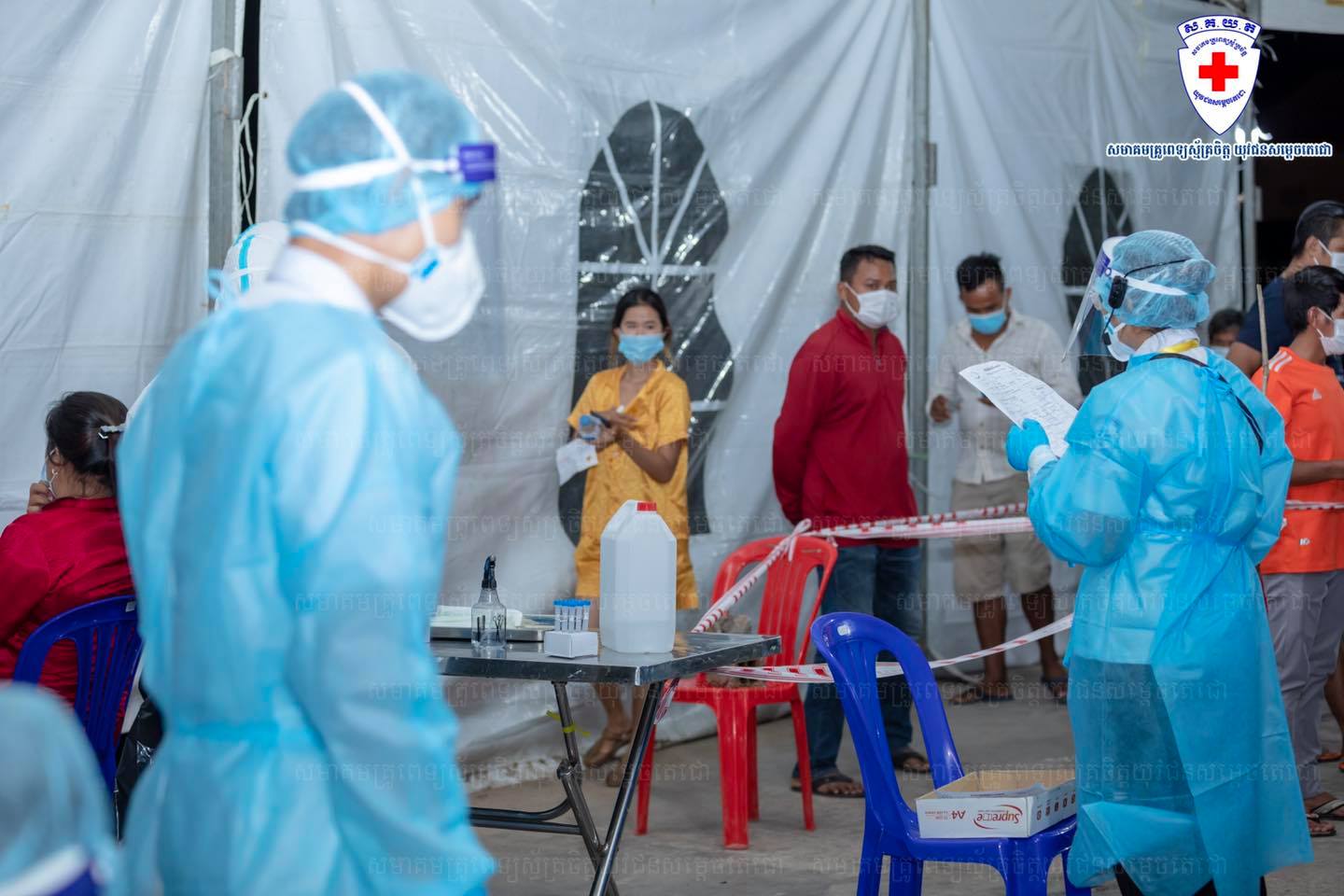 ក្រុមគ្រូពេទ្យចុះយកសំណាកអ្នកសង្ស័យនៅបុរី New Home ទួលពង្រតំបន់ក្រហម ចំនួន៦៣១នាក់ រកឃើញវិជ្ជមាន១៧នាក់