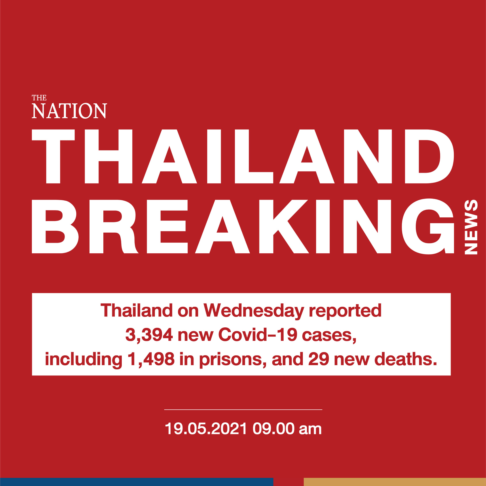 ថៃ៖ អាជ្ញាធរសុខាភិបាលថៃបានប្រកាសអំពីការរឃើញករណីអ្នកឆ្លងជំងឺកូវីដ ១៩ ថ្មីចំនួន ៣,៣៩៤នាក់នៅក្នុងថ្ងៃពុធ ទី ១៩ ខែឧសភានេះ ដែលចំនួនអ្នកឆ្លងថ្មីនេះបានកើនឡើងជិត ១​ ពាន់នាក់ បើធៀបទៅនឹងតួលេខអ្នកឆ្លងកាលពីថ្ងៃម្សិលមិញ។ ក្រៅតែពីបានរកឃើញអ្នកឆ្លងថ្មី ថៃក៏បានរកឃើញអ្នកស្លាប់ដោយសារមានជំងឺជាប់ទាក់ទងនឹងជំងឺកូវីដ​ ១៩ចំនួន ២៩នាក់ផងដែរ។