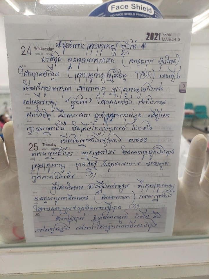អ្នកជំងឺកូវីដម្នាក់សរសេរសំបុត្រមួយច្បាប់ជូនដល់ក្រុមគ្រូពេទ្យនៅមន្ទីរពេទ្យ “ហ្លួងម៉ែ” អានហើយរំភើបចិត្តរកអ្វីប្រៀបផ្ទឹមមិនបាន