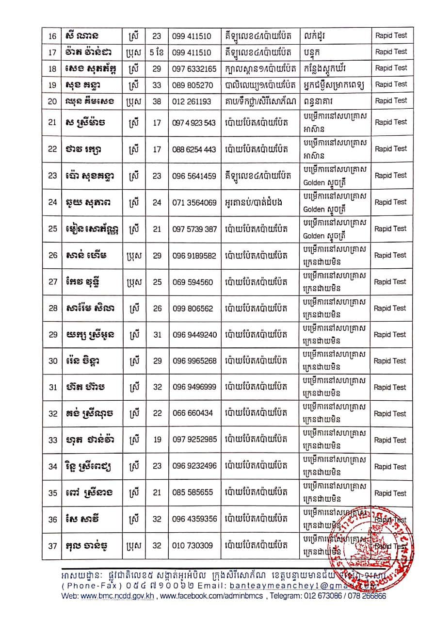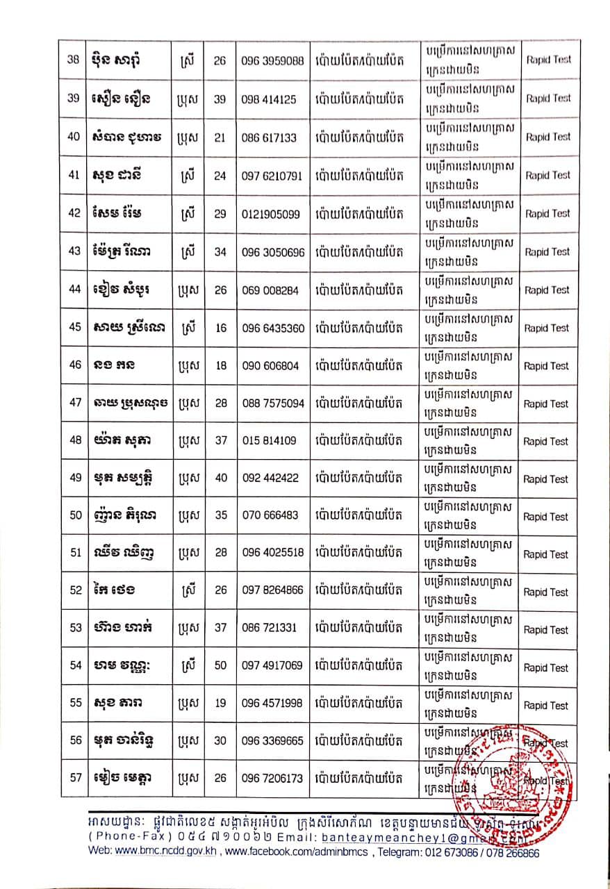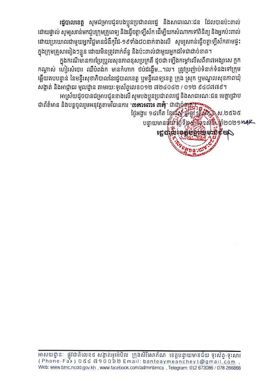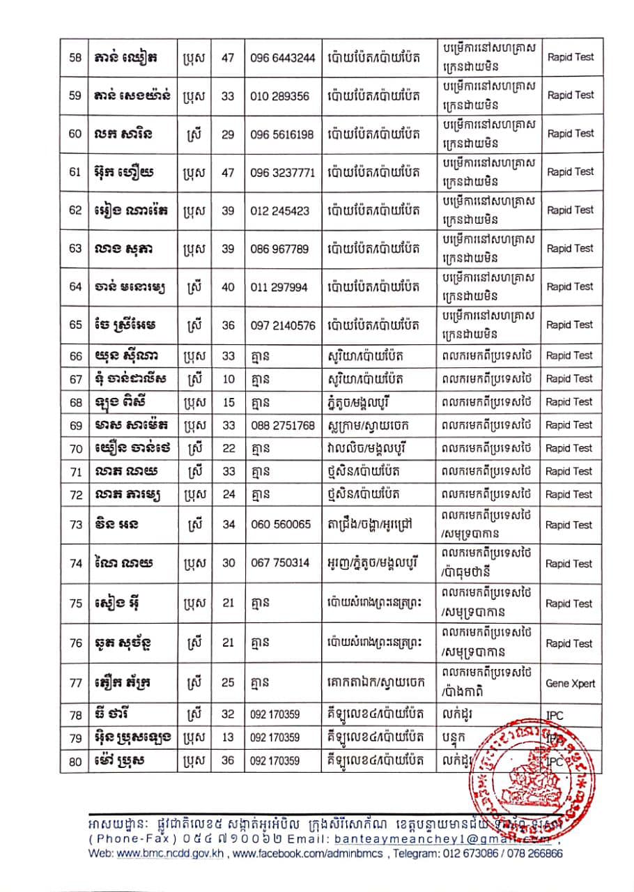 ខេត្តបន្ទាយមានជ័យ រកឃើញជនជាតិខ្មែរ ៨០នាក់ទៀតវិជ្ជមានជំងឺកូវីដ១៩