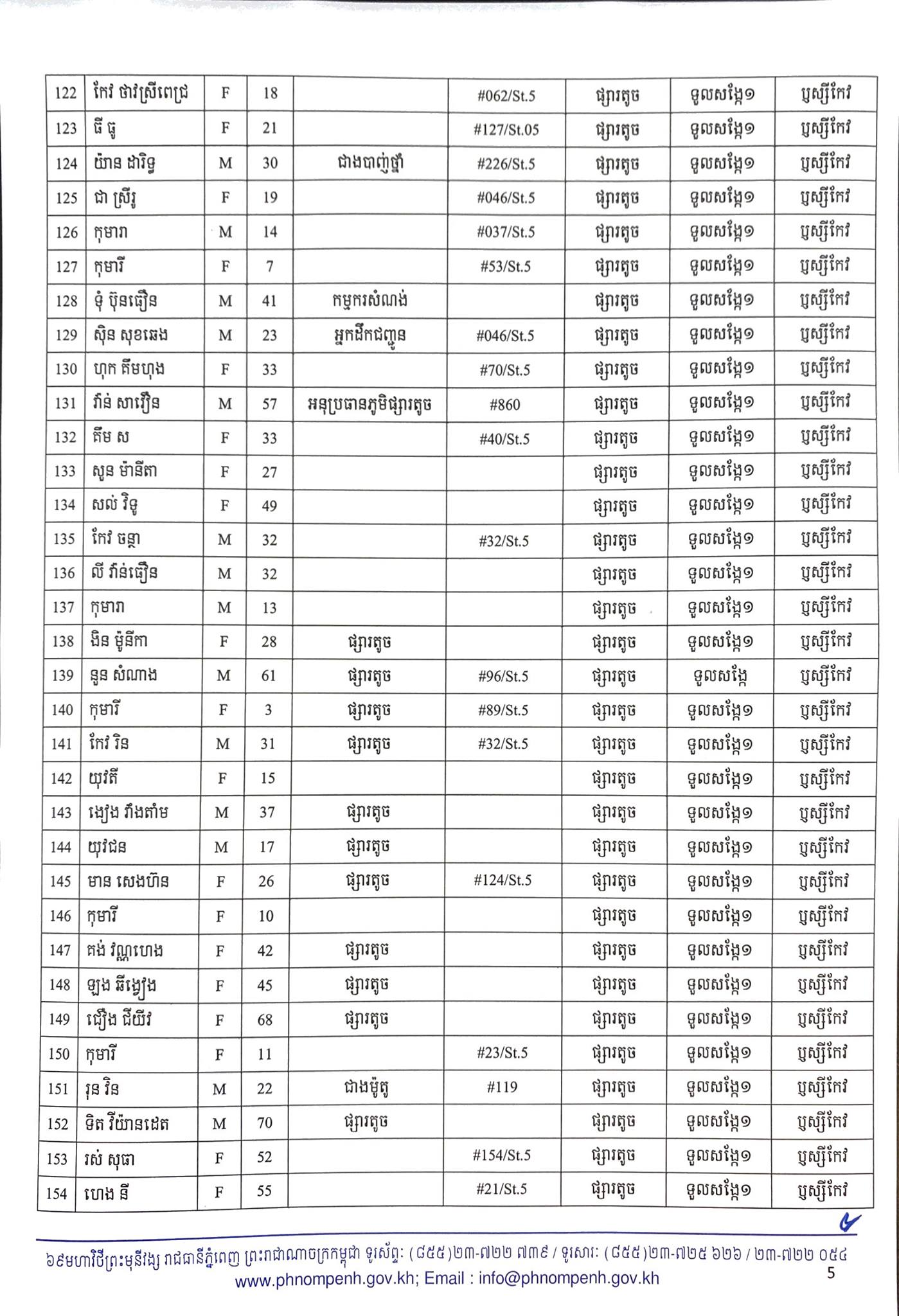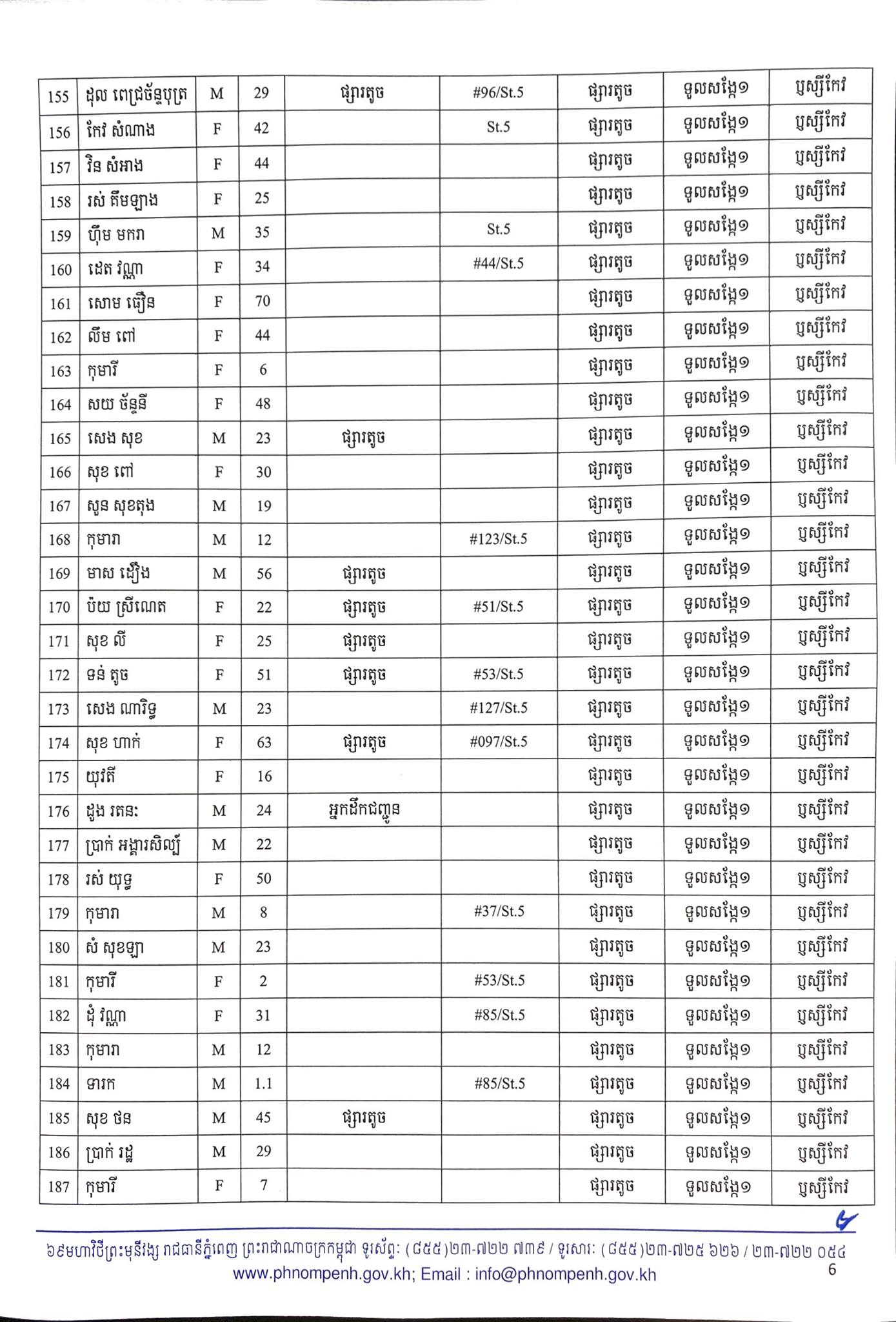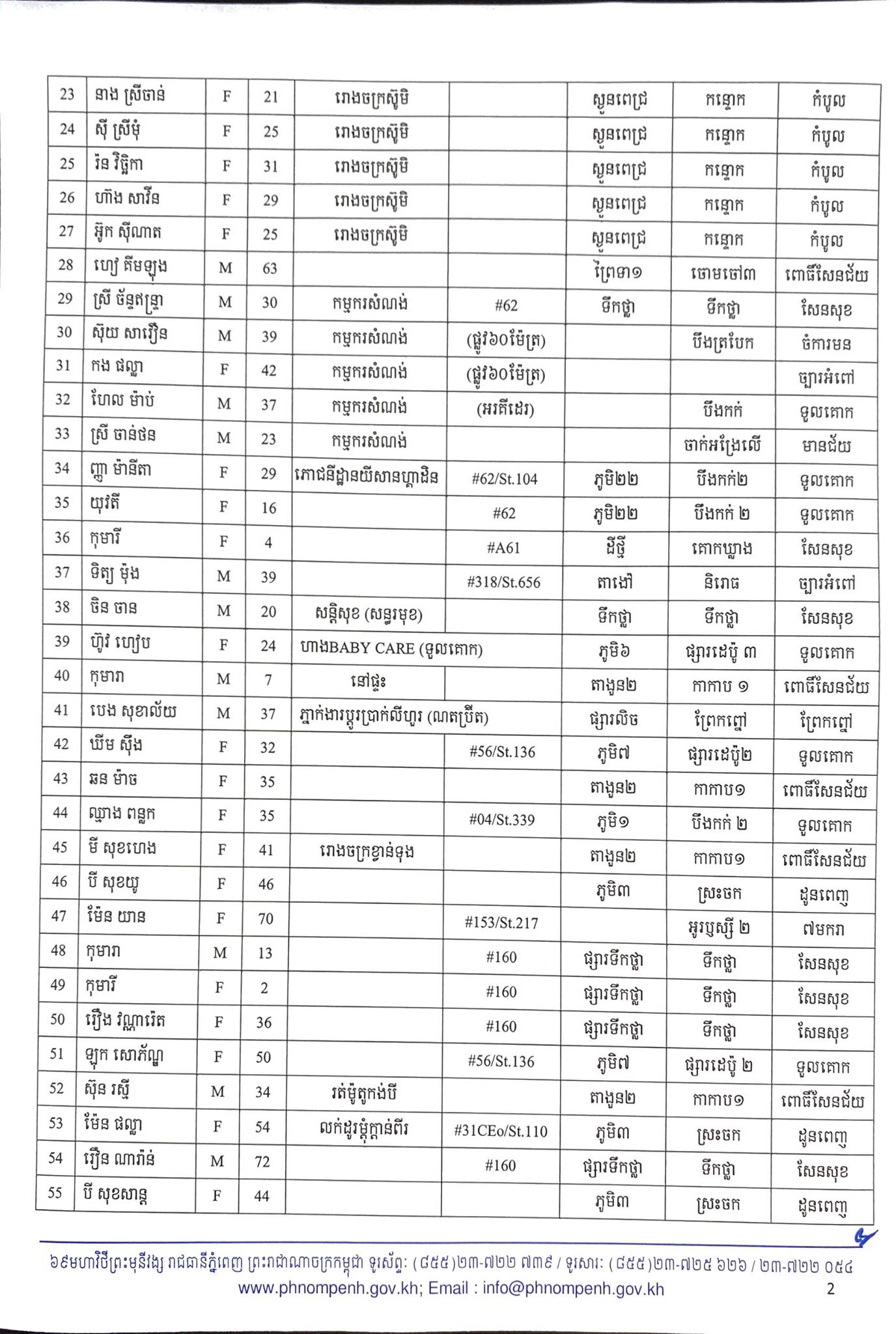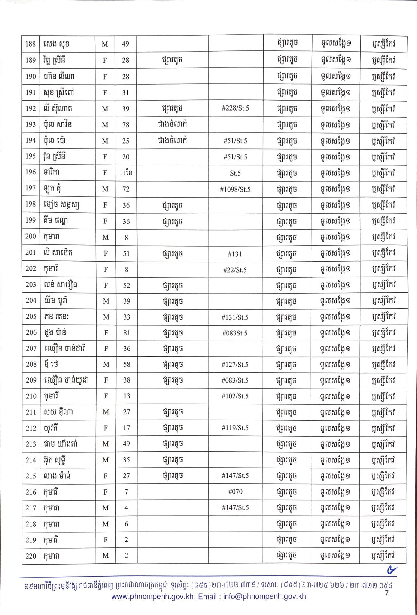 មុននេះបន្តិច រដ្ឋបាលរាជធានីភ្នំពេញ បានធ្វើការបង្ហាញអត្តសញ្ញាណអ្នកឆ្លងកូវីដ១៩ថ្មី ចំនួន២៦០នាក់នៅក្នុងរាជធានីភ្នំពេញ ហើយក្នុងចំណោមនោះមានព្រះសង្ឃនៅវត្តសារាវ័ន្តតេជោចំនួន៦អង្គផងដែរបានឆ្លងកូវីដ ដែលមានដូចខាងក្រោម៖