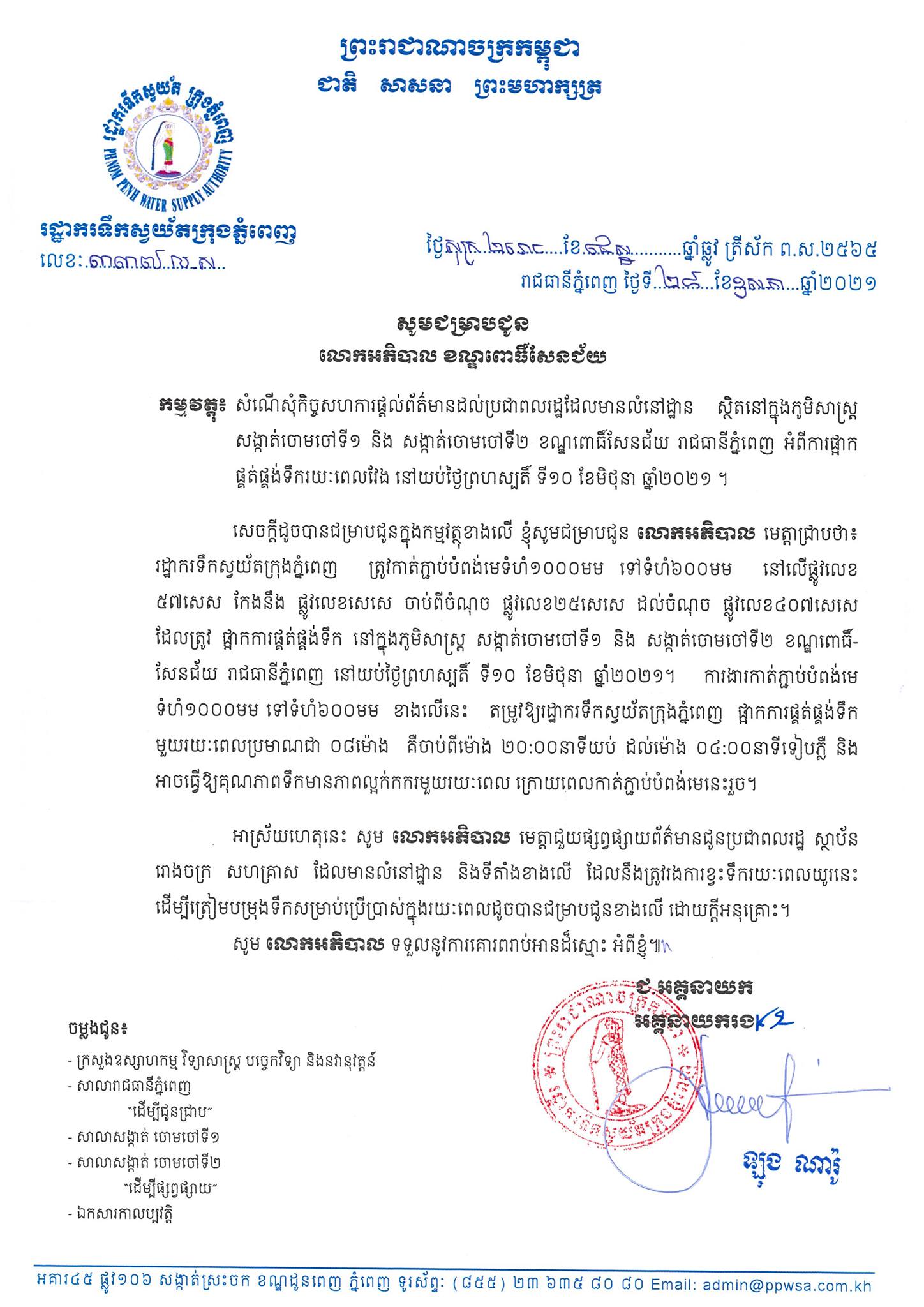 សូមអានសារលិខិតរបស់ រដ្ឋាករទឹកស្វយ័តក្រុងភ្នំពេញ លម្អិតដូចខាងក្រោម៖
