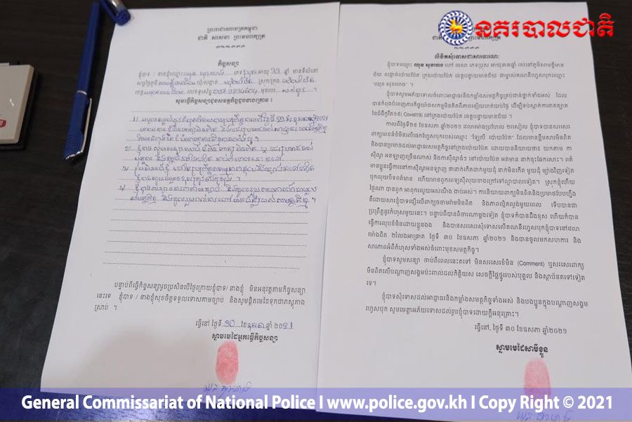 លោកវរសេនីយ៍ទោ តាន់ វីរៈ ​នាយរងការិយាល័យ ប្រឆាំងបទល្មើសបច្ចេកវិទ្យា បានឲ្យដឹងថា៖ ក្រោយពីមានពាក្យខមិនរបស់ម្ចាស់ហ្វេសបុកមួយដែលមានឈ្មោះឈុន សុខហេង នៅថ្ងៃទី២៩ខែឧសភា ឆ្នាំ២០២១ ដែលមានខ្លឹមសារថា៖ “យកតាម កាស៊ីណូអនឡាយច្រើនណាស់ និងកាស៊ីណូធំៗនៅប៉ោយប៉ែត អត់មានអ្នកចុះឆែកសោះ។ ពត៌មានប្អូនធ្វើការនៅកាស៊ីណូអនឡាយ ថាអ្នកកើតដាក់មួយដុំ អ្នកមិនកើតមួយដុំ ម្យ៉ាងវិញទៀត បុកលុយបិទពត៌មាន ហើយមានពួកពេទ្យស៊ីលុយខាងក្រៅ ទៅព្យាបាលទៀត។ ស្រុកខ្ញុំហើយ ថ្ងៃណា ថ្ងៃណាបាន ពួកអាពុករលួយអស់ណឹង ងាប់អស់ ” ។ ដែលខ្លឹមសារទាំងនេះបានបរិហារកេរ្តិ៍និងធ្វ់ឲ្យប៉ះពាល់ដល់ការខិតខំប្រឹងប្រែងរបស់ក្រុមការងារនោះ ។ លោកឧត្តមសេនីយ៍ទោ សិទ្ធិ ឡោះ ស្នងការនគរបាលខេត្តបន្ទាយមានជ័យ បានបញ្ជាឲ្យមន្ត្រីនគរបាលការិយាល័យជំនាញ ប្រឆាំងបទល្មើសបច្ចេកវិទ្យា សហការជាមួយកម្លាំងនគរបាលនៃអធិការដ្ឋាននគរបាលក្រុងប៉ោយប៉ែត ក្រោមការដឹកនាំរបស់លោកឧត្តមសេនីយ៏ស្នងការរងផែនការងារសន្តិសុខផ្ទៃក្នុង ក៏ដូចជាការដឹកនាំបញ្ជាផ្ទាល់របស់លោកវរសេនីយ៌ឯក គង់ វិនឌី ស្នងការរងទទួលបន្ទុកការិយាល័យជំនាញប្រឆាំងបទល្មើស បច្ចេកវិទ្យា ។ ធ្វើការស្រាវជ្រាវនិងឈានដល់រកឃើញម្ចាស់ហ្វេសបុក ដែលមានឈ្មោះ ឈុន សុខហេង ភេទប្រុសអាយុ៣៣ឆ្នាំ មានទីលំនៅភូមិសាមគ្គីមានជ័យ សង្កាត់ប៉ោយប៉ែត ក្រុងប៉ោយប៉ែត ខេត្តបន្ទាយមានជ័យ នៅថ្ងៃទី៣០ខែឧសភា ឆ្នាំ២០២១ ហើយបាននាំខ្លួនម្ចាស់ហ្វេសបុកនោះមកកាន់ស្នងការដ្ឋាននគរបាលខេត្ត ដើម្បីមកធ្វើការបំភ្លឺ ទាក់ទិននឹងការសរសេរខ្លឹមសារនោះ ។