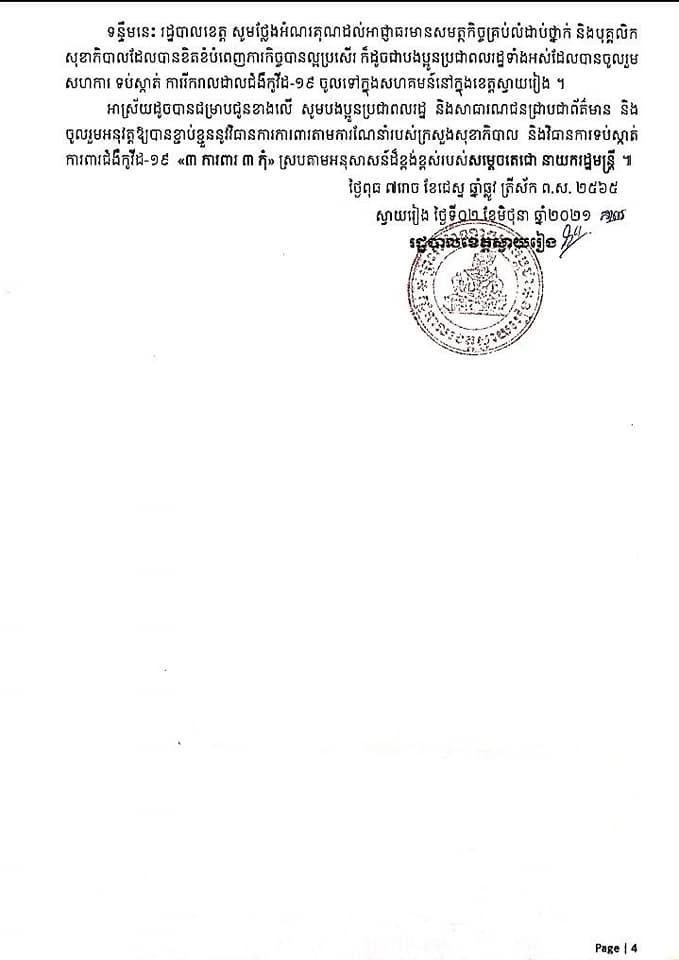 រដ្ឋបាលខេត្តស្វាយរៀងរកឃើញអ្នកផ្ទុកកូវីដ ១៩ចំនួន ៣៣នាក់ទៀត និងមរណភាពម្នាក់