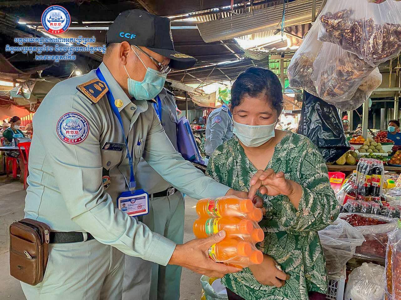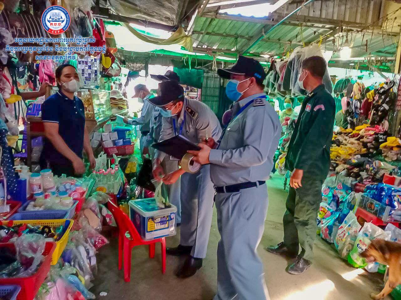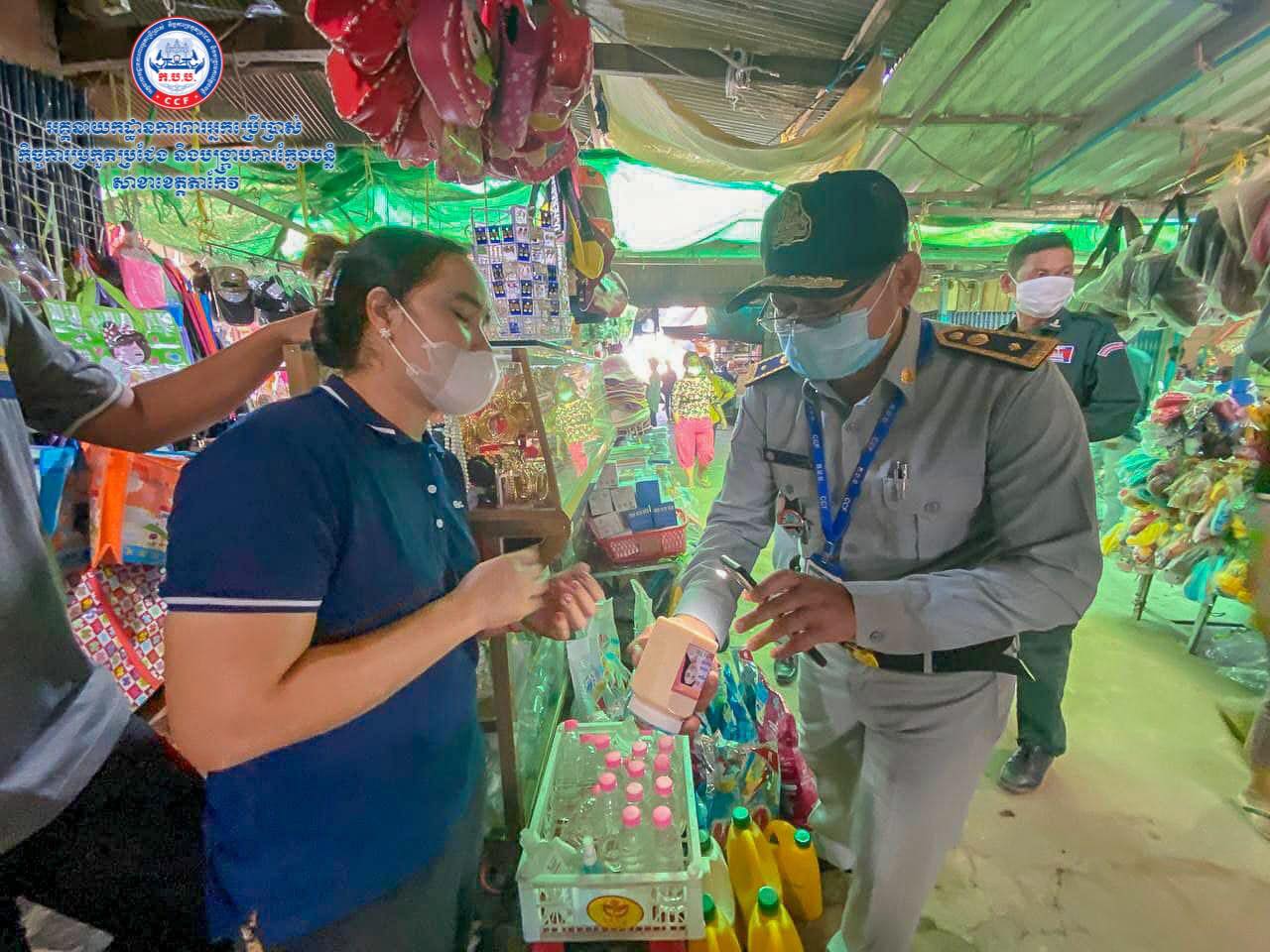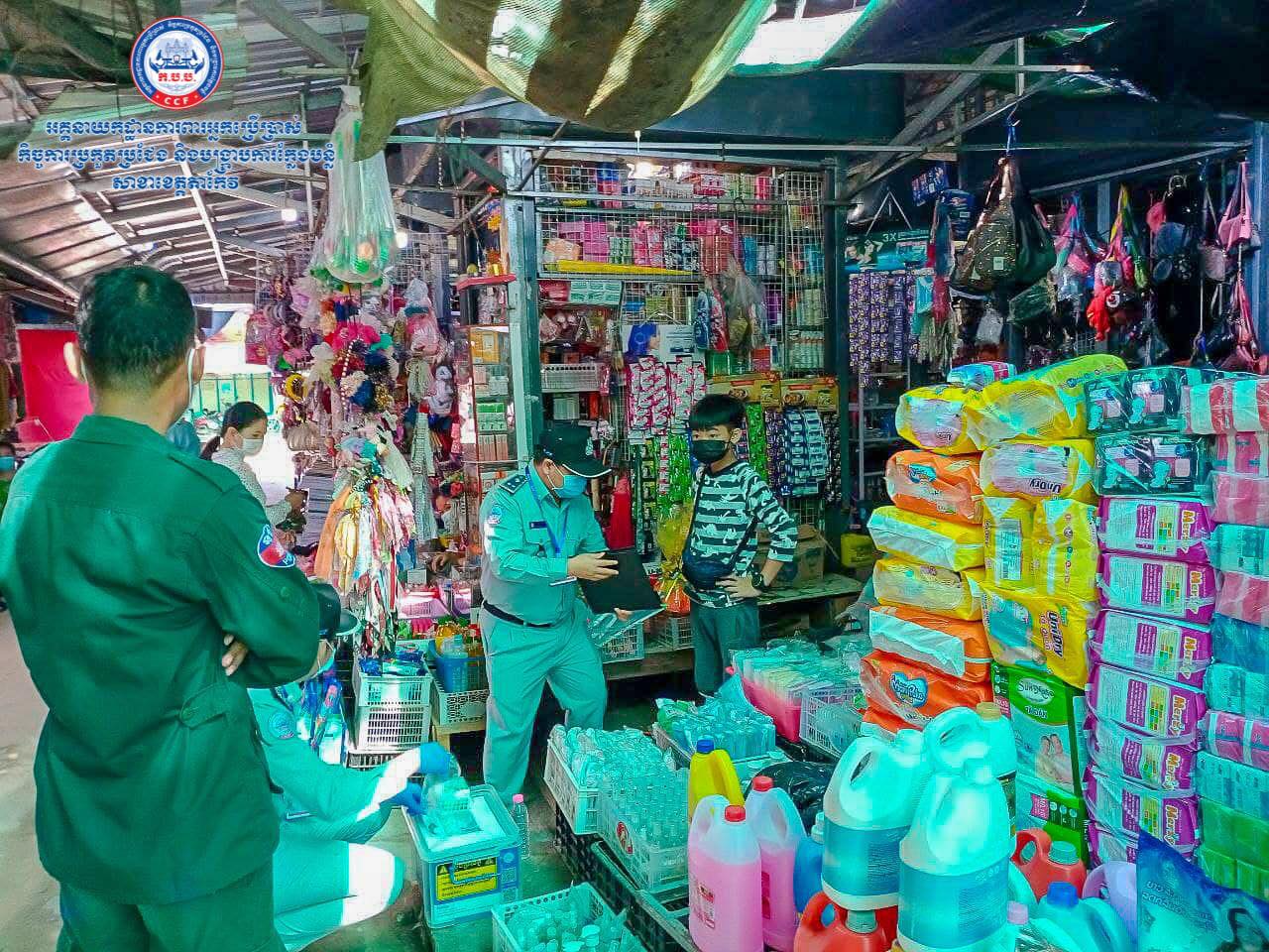 ខេត្តតាកែវ៖ នៅថ្ងៃសុក្រ ៩រោច ខែជេស្ឋ ឆ្នាំឆ្លូវ ត្រីស័ក ព.ស.២៥៦៥ ត្រូវនឹងថ្ងៃទី០៤ ខែមិថុនា ឆ្នាំ២០២១ មន្ត្រីជំនាញសាខា ក.ប.ប. ខេត្តតាកែវ សហការជាមួយមន្ត្រីមន្ទីរពាណិជ្ជកម្មខេត្ត និងអាជ្ញាធរដែនដី បានចុះត្រួតពិនិត្យគុណភាព សុវត្ថិភាពម្ហូបអាហារ អាល់កុល ជែលលាងដៃ និងស្រាស នៅផ្សារព្រៃល្វា ក្នុងខេត្តតាកែវ។
