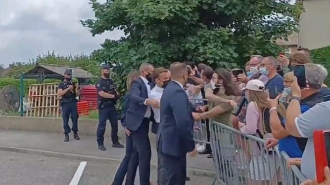 បារាំង៖ ប្រធានាធិបតីនៃប្រទេសបារាំងលោក Emmanuel Macron ត្រូវបានពលរដ្ឋម្នាក់ទះកំផ្លៀងនិងស្រែកជេរដាក់លោករូបលោកទាំងកំរោល ខណៈដែលលោកប្រធានាធិបតីរូបនេះបានអញ្ជើញទៅស្វាគមន៍ពលរដ្ឋដែលជាអ្នកគាំទ្ររូបលោកជាច្រើននាក់ផ្សេងទៀត។ បើយោងតាមការចុះផ្សាយនៅក្នុងសារព័ត៌មាន Daily Mail បានឲ្យដឹងថា ហេតុការណ៍នេះបានកើតឡើងកាលពីថ្ងៃអង្គារ ទី៨ ខែមិថុនា ម្សិលមិញនេះក្នុងអំឡុងពេលដែលលោកប្រធានាធិបតីបារាំងត្រូវអញ្ជើញទៅធ្វើទស្សនៈកិច្ចនៅក្នុងសាលារៀនមួយកន្លែងក្នុងតំបន់ Drome ដែលក្នុងឱកាសនោះលោកនឹងជួបពិភាក្សាជាមួយក្រុមកូនសិស្សអំពីប្រធានបទ “តើជីវិតមនុស្សនឹងត្រលប់មករកភាពធម្មតាវិញដោយរៀបណា បន្ទាប់ពីវិបត្តិកូវីដ ១៩ ត្រូវបានបិទបញ្ចប់”។
