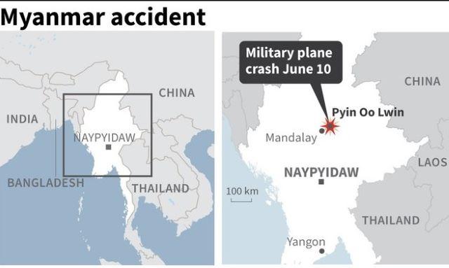 មីយ៉ាន់ម៉ា៖ យ៉ាងហោចណាស់មានមនុស្ស ១២ នាក់បានស្លាប់ បន្ទាប់ពីយន្តហោះយោធាមួយគ្រឿងបានធ្លាក់ កាលពីព្រឹកថ្ងៃព្រហស្បតិ៍ ទី១០ ខែមិថុនា ឆ្នាំ២០២១ នៅជិតទីក្រុងធំជាងគេទី២របស់ប្រទេស គឺទីក្រុងម៉ាន់ដាឡេ ដោយសារតែបញ្ហាអាកាសធាតុមិនល្អ។ ប្រភពព័ត៌មានបាននិយាយថា យន្ដហោះនោះមានអ្នកដំណើររួមមាន៖ បុគ្គលិកយោធា និងព្រះសង្ឃ ដែលត្រូវចូលរួមក្នុងពិធីមួយនៅឯវត្តនៅក្បែរនោះ។