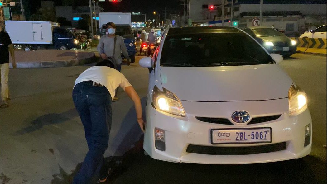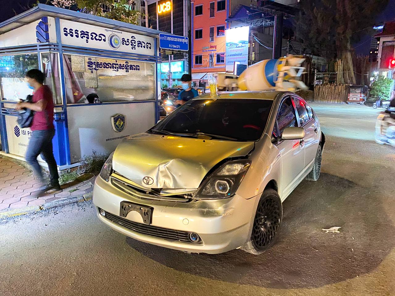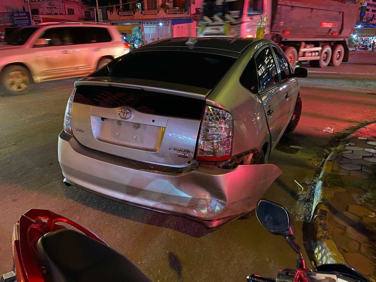 បន្តិចក្រោយមក ស្រាប់តែមានរថយន្តកូរ៉េដឹកទំនិញប្រភេទឃ្លប់ ក្បាលពណ៌ខៀវ ពាក់ស្លាកលេខភ្នំពេញ 2Z-4809 បើកបរដោយបុរសមិនស្គាល់អត្តសញ្ញាណម្នាក់ ធ្វើដំណើរតាមផ្លូវព្រះមុនីវង្សទិសដៅពីកើតមកលិច ក្នុងល្បឿនយឺតៗ ខ្វះការប្រុងប្រយ័ត្ន បានកៀររថយន្តម៉ាក PRIUS ពណ៌ស មួយគ្រឿងទៀត ពាក់ស្លាកលេខភ្នំពេញ 2BL-5067 ដែលបើកបរដោយបុរសម្នាក់ដែរ បណ្ដាលឲ្យខូចខាតធ្លាក់កាងផ្នែកខាងមុខចំហៀងខាងស្ដាំ តែមិនបណ្ដាលឲ្យមនុស្សរបួសទេ ភ្លាមៗសមត្ថកិច្ចបានឃាត់រថយន្តបាន រួចអោយអែបខាងអោយម្ចាស់រថយន្តទាំងសងខាង ធ្វើការចរចារគ្នាមួយជំហានសិនផងដែរ ។