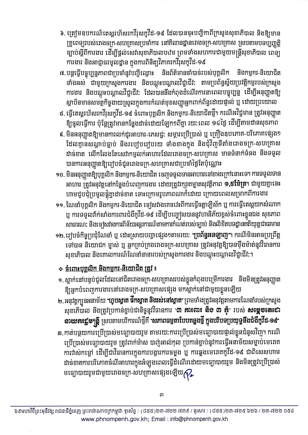 ១. ការស្នាក់នៅរបស់បុគ្គលិក និងកម្មករ-និយោជិតច្រើនរោងចក្រ-សហគ្រាស ប្រមូលផ្តុំក្នុងផ្ទះជួល ឬអគារជួលរួមគ្នា
