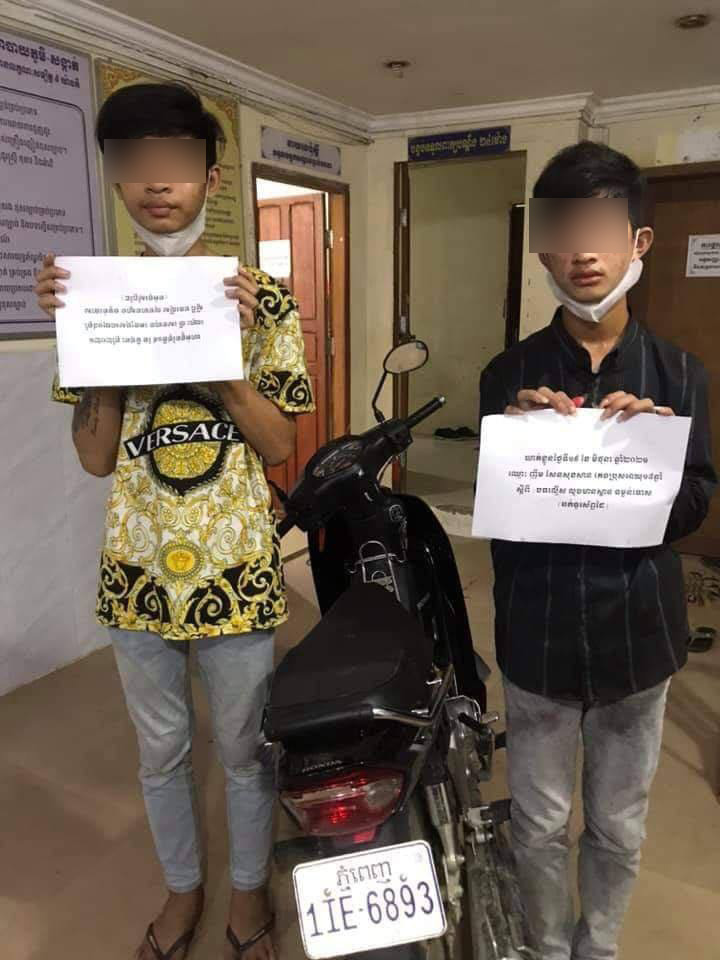 រាជធានីភ្នំពេញ ៖ មានករណីជនសង្ស័យ២នាក់ ត្រូវសមត្ថកិច្ចឃាត់បានភ្លាមៗ បន្ទាប់ពីធ្វើសកម្មភាពឆក់ទូរស័ព្ទបានសម្រេច តែរត់មិនរួច ស្ថិតនៅភូមិក្បាលដំរី១ សង្កាត់កាកាបទី១ ខណ្ឌពោធិ៍សែនជ័យ រាជធានីភ្នំពេញ កាលពីវេលាម៉ោង៧:៤០នាទីយប់ ថ្ងៃទី១៩ ខែ មិថុនា ឆ្នាំ២០២១នេះ ។ ជនសង្ស័យចំនួន០២នាក់៖ ទី១.ឈ្មោះ ញឹម សែនសុខសាន ភេទប្រុស អាយុ១៨ឆ្នាំ មុខរបរ សិស្ស ស្នាក់នៅភូមិជម្ពូវន្ត សង្កាត់ចោមចៅ៣ ពោធិ៍សែនជ័យ ភ្នំពេញ ។ ទី២.ឈ្មោះ លី សេងហុង ភេទប្រុស អាយុ១៧ឆ្នាំ មុខរបរសិស្ស ស្នាក់នៅភូមិព្រៃព្រីងខាងត្បូង សង្កាត់ចោមចៅ៣ ពោធិ៍សែនជ័យ ភ្នំពេញ ។