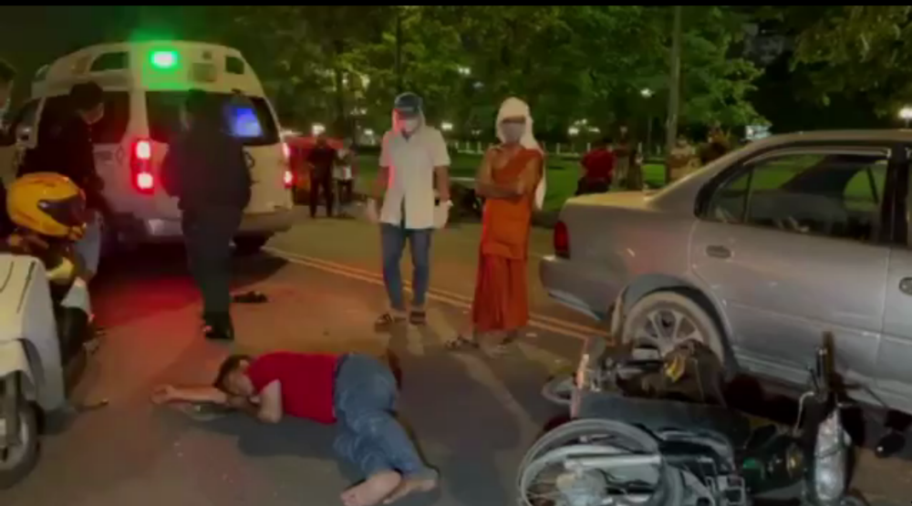 រាជធានីភ្នំពេញ៖ ព្រះសង្ឃមួយអង្គបើករថយន្ត ដោយអង្គឯងធ្វើដំណើរតាមបណ្ដោយផ្លូវសុធារសក៏មានបុរសម្នាក់ស្រវឹងស្រា បើកម៉ូតូលឿនរេចង្កូតទៅ បុកចំក្បាលរថយន្តចំហៀងខាងស្ដាំ បណ្តាលឲ្យដួលរបួសអ្នកបើកម៉ូតូធ្ងន់ត្រង់ជើងខាងស្ដាំហេតុការណ៍គ្រោះថ្នាក់ចរាចរណ៍នេះ កើតឡើងកាលពីវេលាម៉ោង ១យប់ រំលងអាធ្រាត្រថ្ងៃអង្គារ៍ ទី២២ ខែមិថុនា ឆ្នាំ២០២១ នៅចំណុចសួនច្បារមុខ វត្តបទុមវតី ផ្លូវសុធារស កែងផ្លូវ២៤០ ក្នុងសង្កាត់ចតុមុខ ខណ្ឌដូនពេញ រាជធានីភ្នំពេញ។ ព្រះសង្ឃដែលបើករថយន្តដោយអង្គឯងមានព្រនាម ជា សំណាងគង់ នៅវត្តកោះ មេត្តាពោធិវង្ស ខណ្ឌទួលគោក។