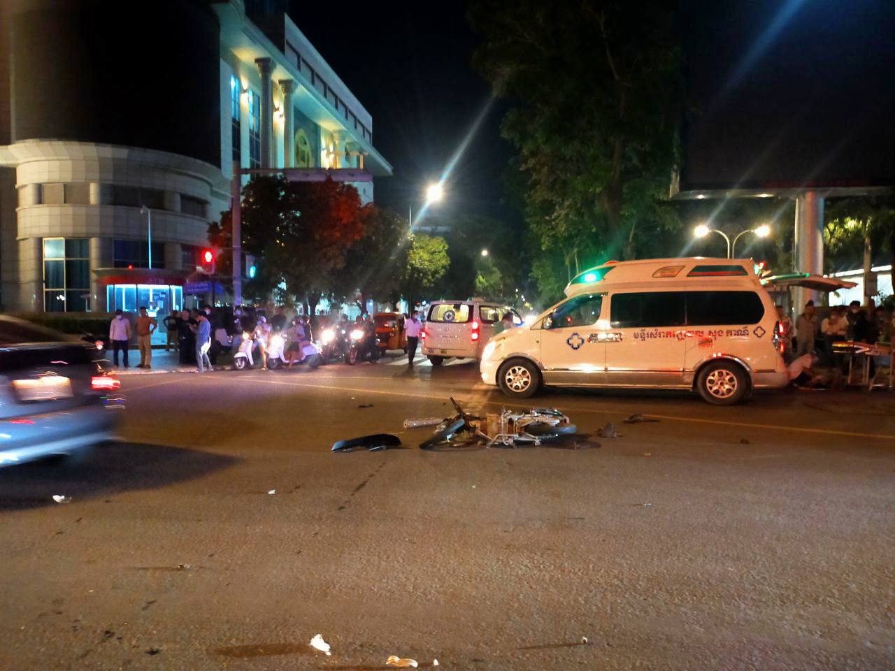 រាជធានីភ្នំពេញ ៖ សេចក្ដីរាយការណ៍បឋមបានឲ្យដឹងថា មានរថយន្តស៊េរីទំនើប Rolls Royce ពណ៌ស (មិនចាំស្លាកលេខ) មានតម្លៃខ្ទង់សែនដុល្លារអាមេរិក បើកបរក្នុងល្បឿនលឿន និងបំពានភ្លើងស្តុប ទៅបុកម៉ូតូមួយគ្រឿង ម៉ាកហុងដាឌ្រីម ជិះឌុបគ្នា៤នាក់ ដែលកំពុងឆ្លងកាត់ផ្លូវបំបែកជាបួន បណ្ដាលឲ្យខ្ទាតប៉ើងបោកនឹងថ្នល់ រងរបួសធ្ងន់ធ្ងរបាក់ជើងទាំង៤នាក់ ក្នុងនោះមានម្នាក់ធ្ងន់ធ្ងរជាងគេ ។ ករណីគ្រោះថ្នាក់ចរាចរណ៍ដ៏សាហាវនេះកើតឡើងកាលពីម៉ោង០០:០៥នាទីយប់រំលងអាធ្រាត្រ ឈានចូលថ្ងៃអង្គារ៍ ទី២៣ ខែមិថុនា ឆ្នាំ២០២១នេះ នៅចំណុចស្តុបប៉េកាសេ ផ្លូវព្រះមុនីវង្ស កែងផ្លូវព្រះអង្គឌួង (ព្រំប្រទល់សង្កាត់ស្រះចក និងសង្កាត់វត្តភ្នំ) ខណ្ឌដូនពេញ រាជធានីភ្នំពេញ ។