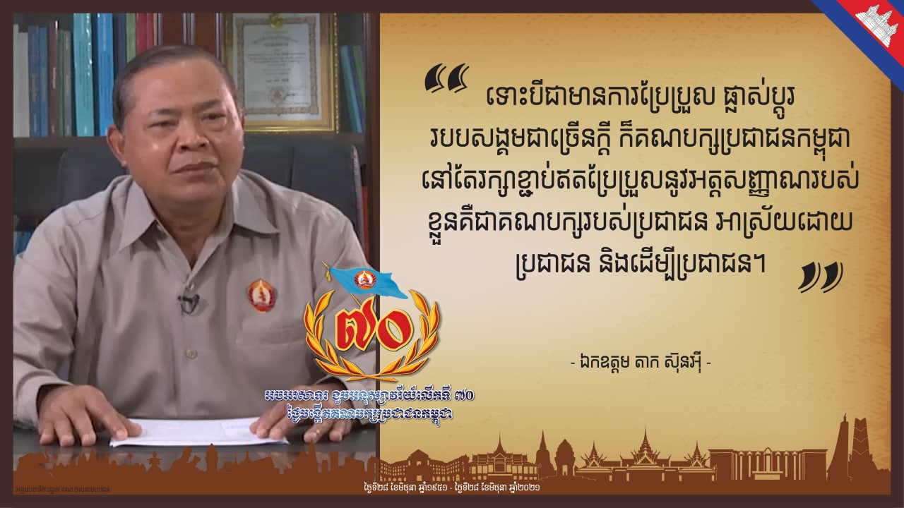៧០ ឆ្នាំកន្លងទៅនេះកម្ពុជា បានឆ្លងកាត់នូវរឿងរ៉ាវលំបាកជាច្រើន ដែលគ្រប់ដំណាក់កាលទាំងអស់គឺតែងតែមានវត្តមាន គណបក្សប្រជាជនកម្ពុជា នៅរួមរស់ជាមួយគ្នាដោះស្រាយបញ្ហានានាគ្រប់ពេលវេលា