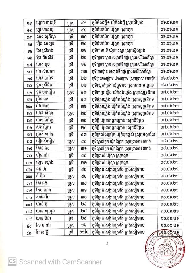 ខេត្តសៀមរាប រកឃើញអ្នកវិជ្ជមានកូវីដចំនួន ៤៩នាក់បន្ថែមទៀត ក្នុងនោះមាន៣២នាក់ ដែលជាប្រភពចម្លងចេញពីផ្សារលើធំថ្មី