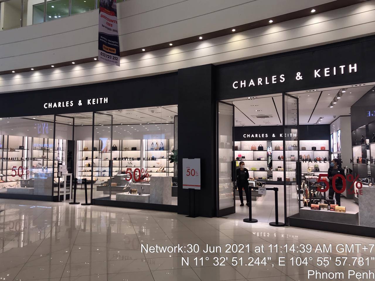 + ហាង Charles & Keith សាខា ផ្សារទំនើប AEON 1 ដែលមានទីតាំងស្ថិតនៅផ្លូវសុធារស សង្កាត់ទន្លេបាសាក់ ខណ្ឌចំការមន នៅថ្ងៃទី២២ ខែមិថុនា ឆ្នាំ២០២១ ចាប់ពីម៉ោង ១៧ និង០០នាទី ដល់ ១៧ និង៤០នាទី មានអ្នកជំងឺ កូវីដ១៩ (COVID-19) មានគ្នា ២នាក់ បានចូលទៅមើលផលិតផលលក់បញ្ចុះតម្លៃ នៅទីតាំងខាងលើនេះ។
