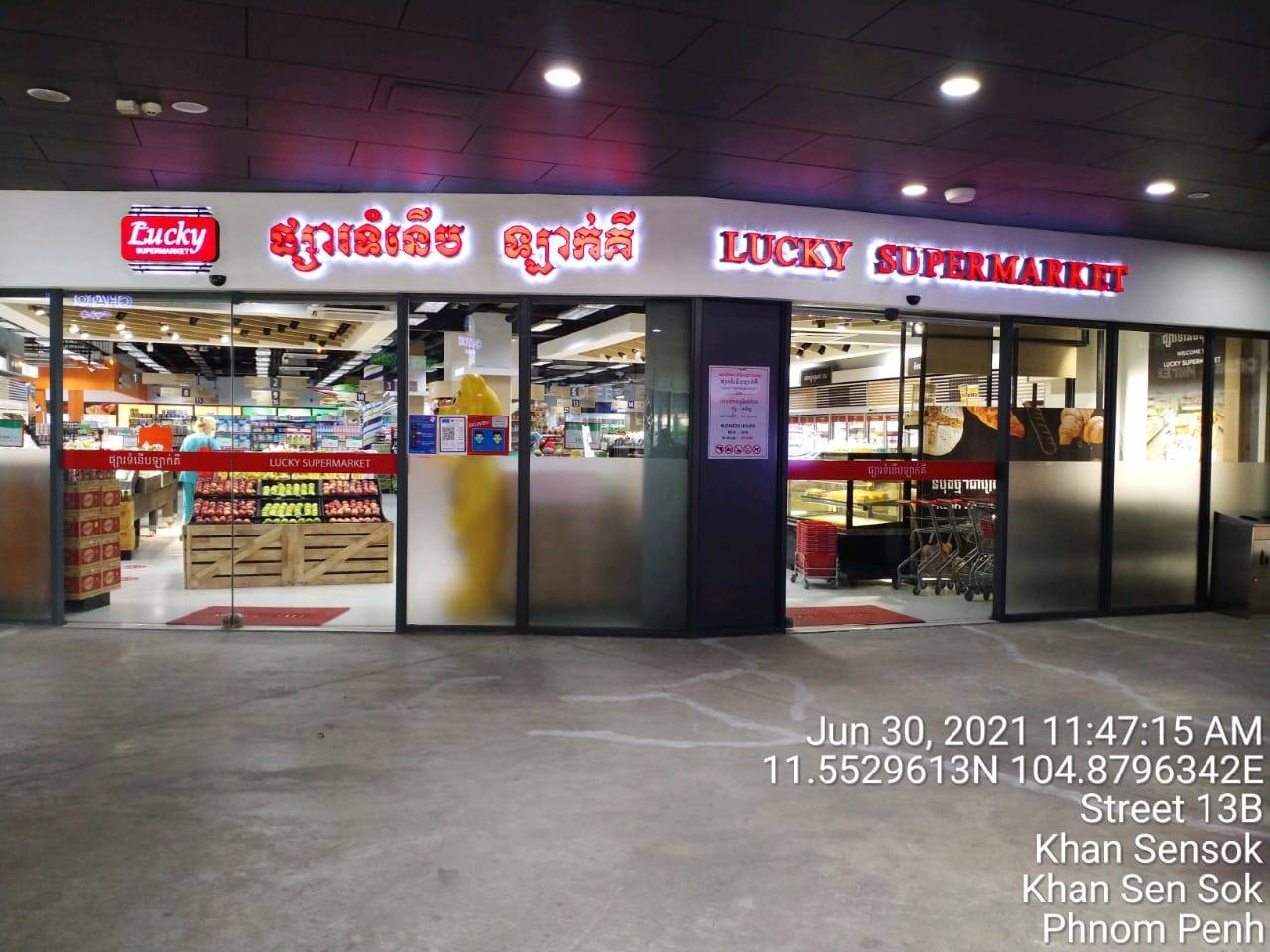 + ផ្សារទំនើប ឡាក់គី (Lucky Supermarket) សាខាផ្សារទំនើប Mid Town ដែលមានទីតាំងស្ថិតនៅផ្លូវលេខ២០០៤ សង្កាត់ទឹកថ្លា ខណ្ឌសែនសុខ នៅថ្ងៃទី២២ ខែមិថុនា ឆ្នាំ២០២១ ចាប់ពីម៉ោង ១៧ និង៤០នាទី ដល់ ១៨ និង១០នាទី មានអ្នកជំងឺកូវីដ១៩ (COVID-19) មានគ្នា ២នាក់ បានចូលទៅទិញទំនិញមួយចំនួន នៅទីតាំងខាងលើនេះ។
