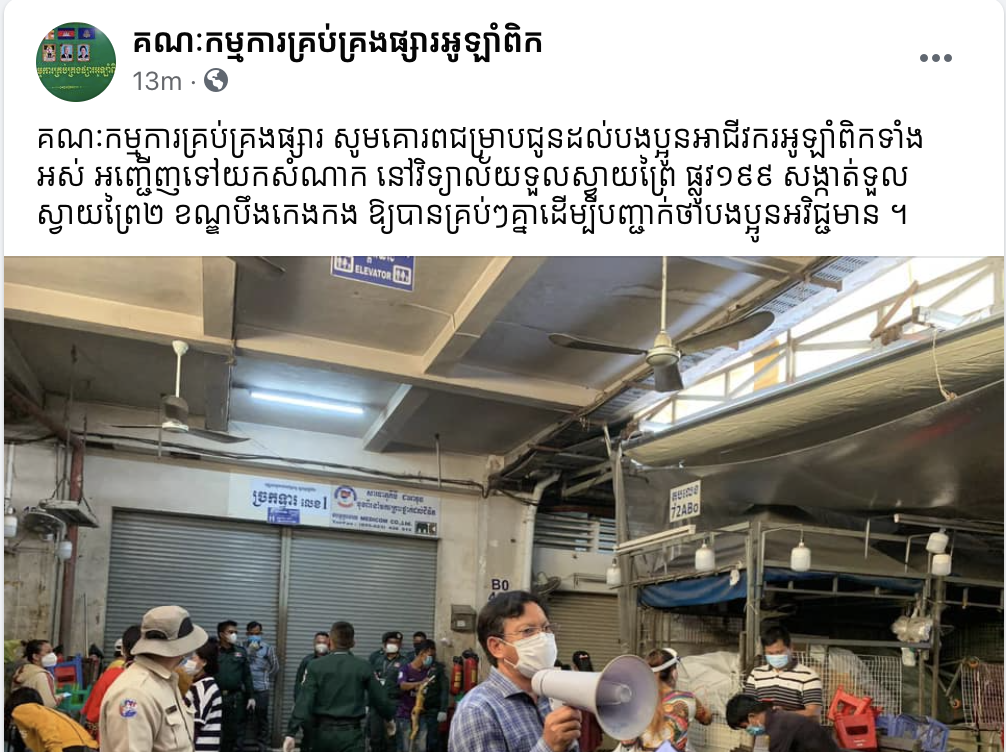 ក្រោយមានអាជីវករផ្សារអូឡាំពិកឆ្លងកូវីដ ព្រឹកនេះគណៈកម្មការគ្រប់គ្រងផ្សារ ស្នើរឲ្យអាជីវករទាំងអស់ទៅយកសំណាកនៅវិទ្យាល័យទួលស្វាយព្រៃ
