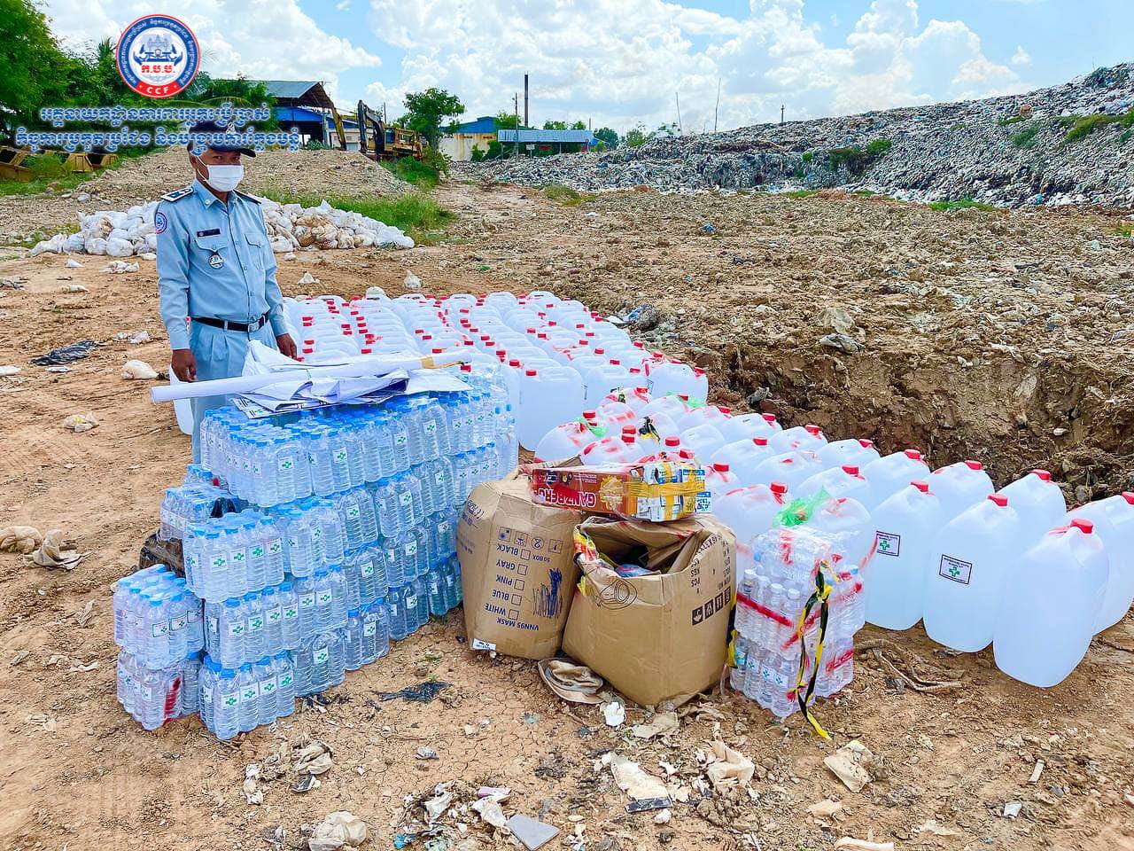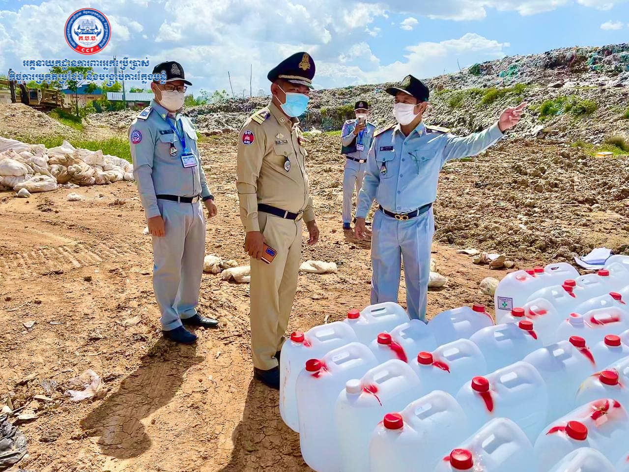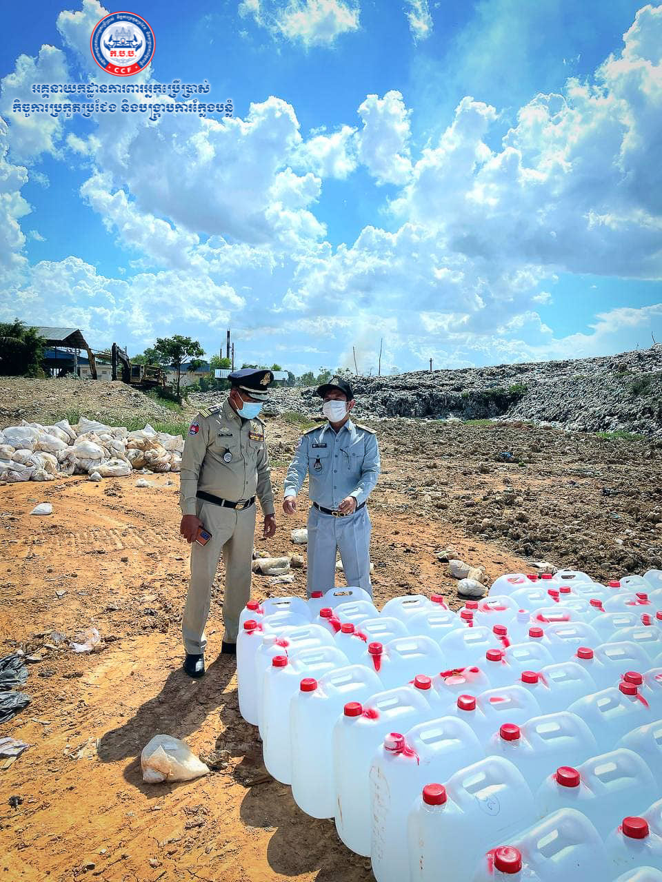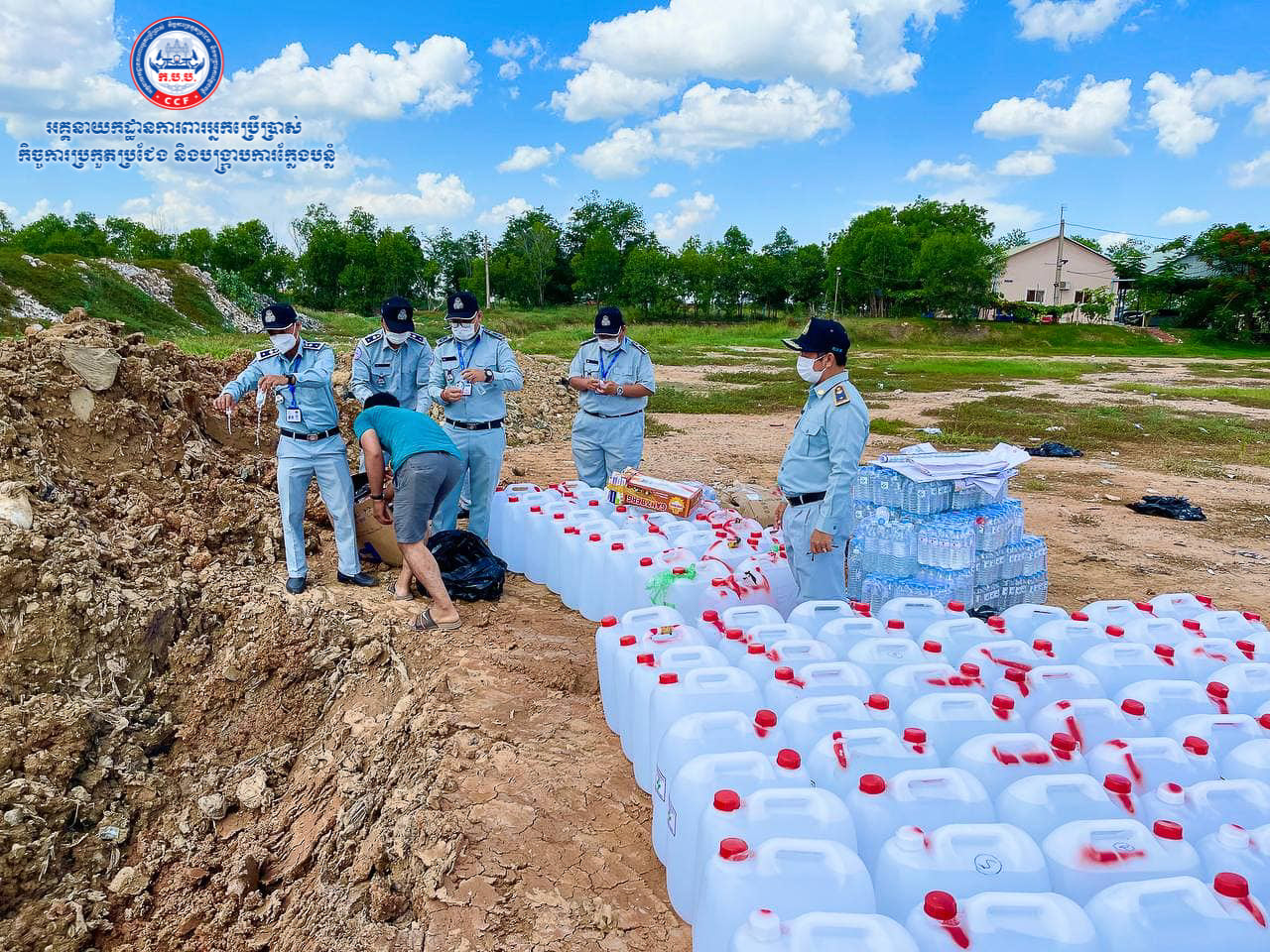 រាជធានីភ្នំពេញ៖ យោងតាមការបញ្ជាក់ពី អគ្គនាយកដ្ឋានការពារអ្នកប្រើប្រាស់ កិច្ចការប្រកួតប្រជែង និងបង្ក្រាបការក្លែងបន្លំ បានឲ្យដឹងថា នៅថ្ងៃទី២ ខែកក្កដា ឆ្នាំ២០២១ មន្រ្តីអគ្គនាយកដ្ឋាន ក.ប.ប. បាននាំយកអាល់កុលក្លែងក្លាយ ឬមេតាណុលប្រមាណជិត ៥តោន ទៅបំផ្លាញចោលនៅទីលានចាក់សំរាម ដែលស្ថិតនៅក្នុងខណ្ឌដង្កោ រាជធានីភ្នំពេញ។