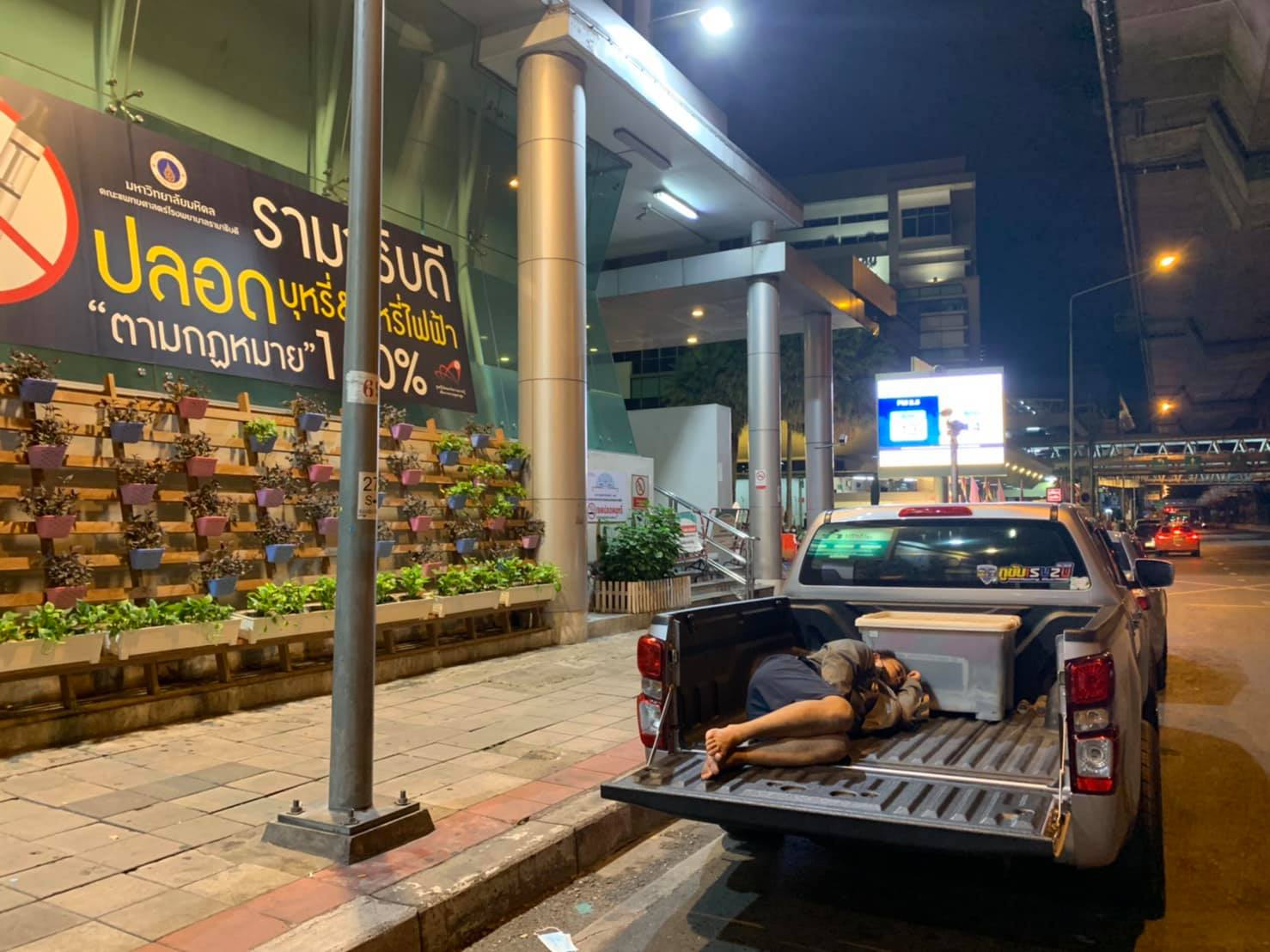 ដោយសាខ្វះគ្រែពេទ្យ អ្នកជំងឺកូវីដ១៩ នៅថៃមួយចំនួនសុខចិត្តអង្គុយចាំក្រៅមន្ទីរពេទ្យទាំងយប់ ដើម្បីបានគ្រែសម្រាកព្យាបាល