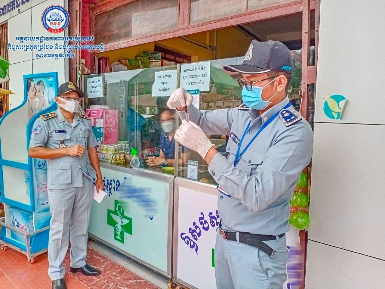 ខេត្តតាកែវ៖ យោងតាមការចុះផ្សាយរបស់ អគ្គ.ការពារអ្នកប្រើប្រាស់ កិច្ចការប្រកួតប្រជែង និងបង្ក្រាបការក្លែងបន្លំ បានឲ្យដឹងថា នាព្រឹកថ្ងៃទី០៥ ខែកក្កដា ឆ្នាំ២០២១ មន្ត្រីជំនាញសាខា ក.ប.ប. ខេត្តតាកែវ បានចុះធ្វើការត្រួតពិនិត្យផលិតផលទំនិញនៅតាមបណ្តាគេហដ្ឋាន និងឱសថស្ថាន ស្ថិតនៅក្នុងឃុំរការក្រៅ ក្រុងដូនកែវ ខេត្តតាកែវ។ ជាលទ្ធផល មន្រ្តីជំនាញបានធ្វើការដកហូតនូវអាល់កុលមានសារធាតុមេតាណុលប្រមាណ ១០៧.៥លីត្រ ក្រោយបានធ្វើតេស្តបឋម និងទំនិញហួសកាលបរិច្ឆេទប្រើប្រាស់មួយចំនួន រួមមាន៖