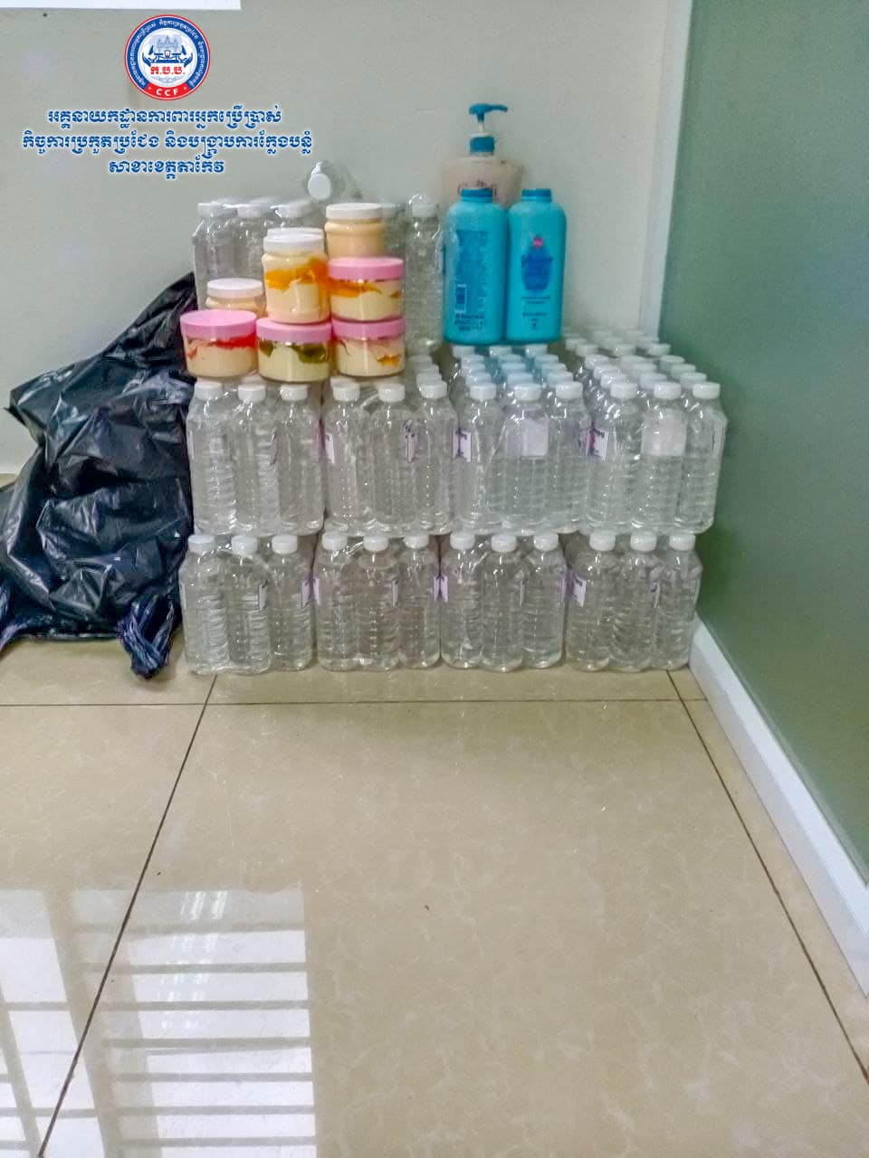 មន្រ្តីជំនាញចុះដកហូតអាល់កុលមានសារធាតុមេតាណុលប្រមាណ ១០៧.៥លីត្រ និងរកឃើញទំនិញផុតកំណត់មួយចំនួនទៀតនៅខេត្តតាកែវ