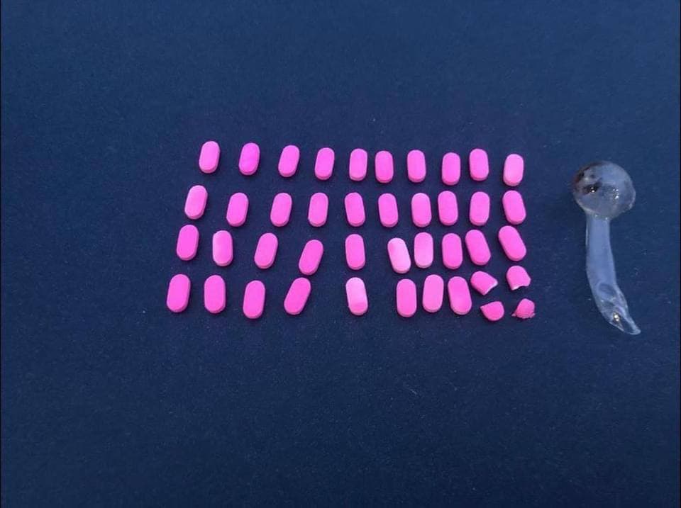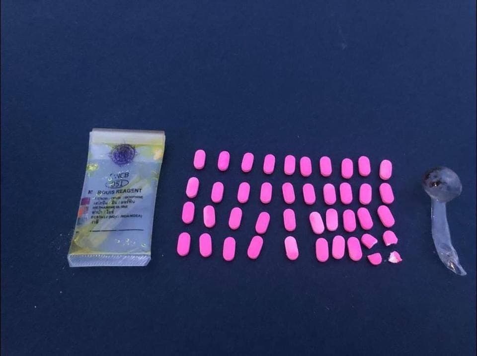 ថ្នាំគ្រាប់ពណ៌ផ្កាឈូក (សង្ស័យជាសារ-ធាតុ-ញៀ-ន) ៤០គ្រាប់ ត្រូវបានកម្លាំងអាវុធហត្ថរាជធានីភ្នំពេញ ឆែករកឃើញក្នុងសម្ភារផ្ញើឲ្យអ្នកជំងឺកូវីដ-១៩