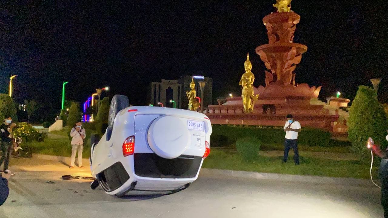 ស្រវឹងហើយបើកបរទៀត! យប់មិញនេះមានរថយន្តពីរគ្រឿងក្រឡាប់ផ្ងារជើង នៅក្នុងខណ្ឌជ្រោយចង្វារ បង្កឡើងដោយអ្នកបើកបរមានសារធាតុស្រវឹង ត្រូវបានសមត្ថកិច្ចនាំខ្លួនឡើងជិះឡានសារ៉ែន វាស់ជាតិអាកុល
