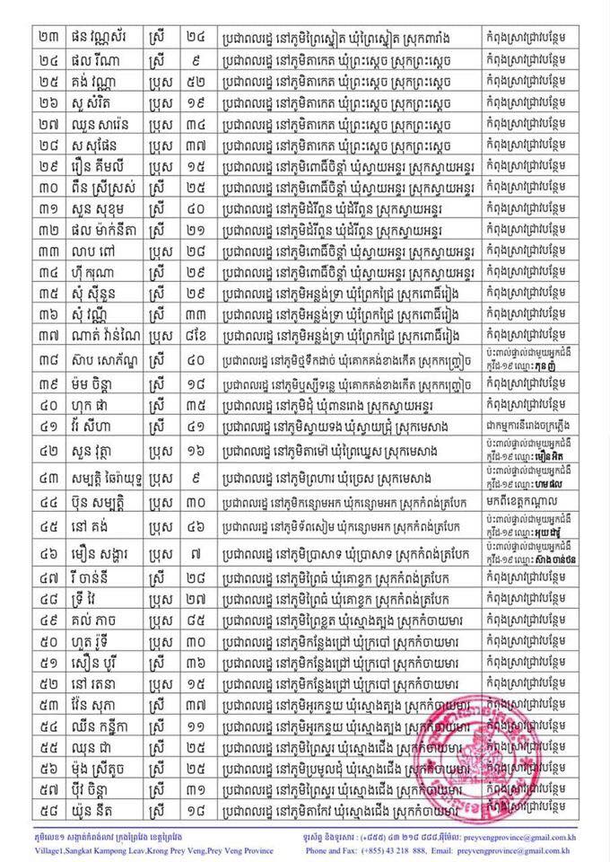 ខេត្តព្រៃវែង រកឃើញអ្នកវិជ្ជមានកូវីដ-១៩ ចំនួន១០៩នាក់ បន្ថែមទៀត
