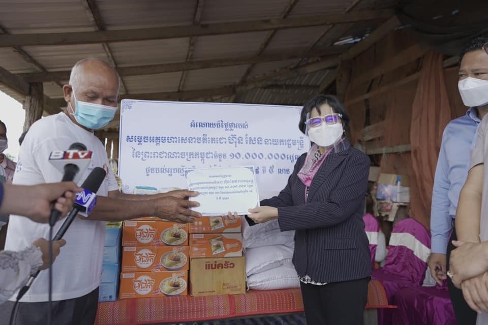រាជធានីភ្នំពេញ៖ យោងតាមការចុះផ្សាយរបស់ ទូរទស្សន៍ជាតិកម្ពុជា ទទក-TVK បានឲ្យដឹងថា នៅថ្ងៃទី១៤ ខែកក្កដា ឆ្នាំ២០២១ លោកជំទាវ វេជ្ជបណ្ឌិត ឱ វណ្ណឌីន រដ្ឋលេខាធិការ ក្រសួងសុខាភិបាល និងជាប្រធានគណកម្មការចំពោះកិច្ចចាក់វ៉ាក់សាំងកូវីដ-១៩ ក្នុងក្របខណ្ឌទូទាំងប្រទេស (គ.វ.ក-១៩) បាននាំយកជំនួយឧបត្ថម្ភថវិកាចំនួន ១០លានរៀល និងសម្ភារៈឧបភោគបរិភោគ ដែលជាអំណោយដ៏ថ្លៃថ្លារបស់ សម្តេចអគ្គមហាសេនាបតីតេជោ ហ៊ុន សែន នាយករដ្ឋមន្ត្រីនៃព្រះរាជាណាចក្រកម្ពុជា ទៅប្រគល់ជូនដល់ជ័យលាភីចាក់វ៉ាក់សាំងកូវីដ-១៩ លេខរៀងទី ៥លាន តាមការណែនាំដ៏ខ្ពង់ខ្ពស់របស់ សម្តេចតេជោ នាយករដ្ឋមន្ត្រី។