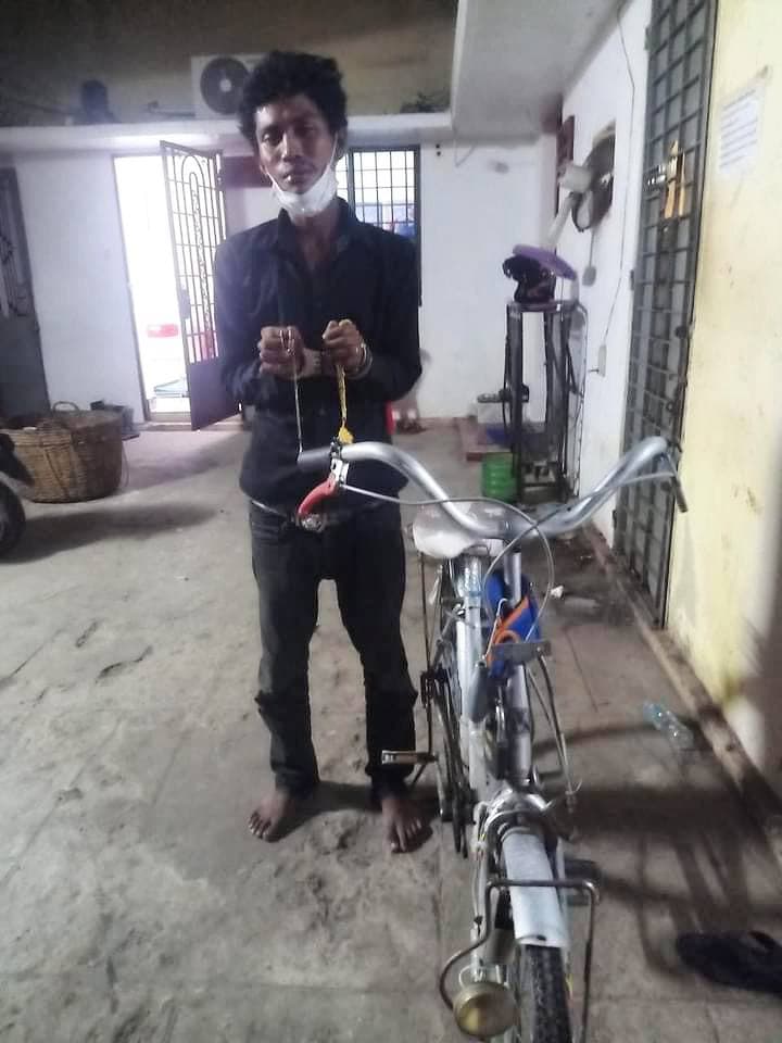 រាជធានីភ្នំពេញ៖ ប្ដីជូនប្រពន្ធត្រលប់មកពីពិនិត្យផ្ទៃពោះវិញ បានបើក LEXUS RX330 មកឈប់ចុះទិញធុរេន មិនបានពន្លត់ម៉ាស៊ីន ហើយចុះទៅរើសធុរេន ស្រាប់តែជនសង្ស័យ២នាក់ ជិះកង់ឌុបគ្នា មកធ្វើសកម្មភាព បើកទ្វាររថយន្ត លួចយកកាបូបរបស់ប្រពន្ធ ហើយជិះឌុបគ្នារត់គេចខ្លួនបាត់៥ម៉ោង ត្រូវកម្លាំងជំនាញព្រហ្មទណ្ឌខណ្ឌច្បារអំពៅ សហការជាមួយកម្លាំងប៉ុស្តិ៍ច្បារអំពៅទី១ ធ្វើការស្រាវជ្រាវកំណត់មុខសញ្ញាតាមចាប់ឃាត់ខ្លួនបានម្នាក់ ចំណែកបក្ខពួកម្នាក់ទៀតបានរត់បាត់។ ហេតុការណ៍នេះបានកើតឡើងកាលពីវេលាម៉ោងជិត១រសៀល ថ្ងៃពុធ ទី១៤ ខែកក្កដា ឆ្នាំ២០២១នេះ នៅចំណុចស្ថានីយប្រេងឥន្ទនៈកាល់តិច ផ្លូវជាតិលេខ១ សង្កាត់ច្បារអំពៅទី១ ខណ្ឌច្បារអំពៅ រាជធានីភ្នំពេញ។