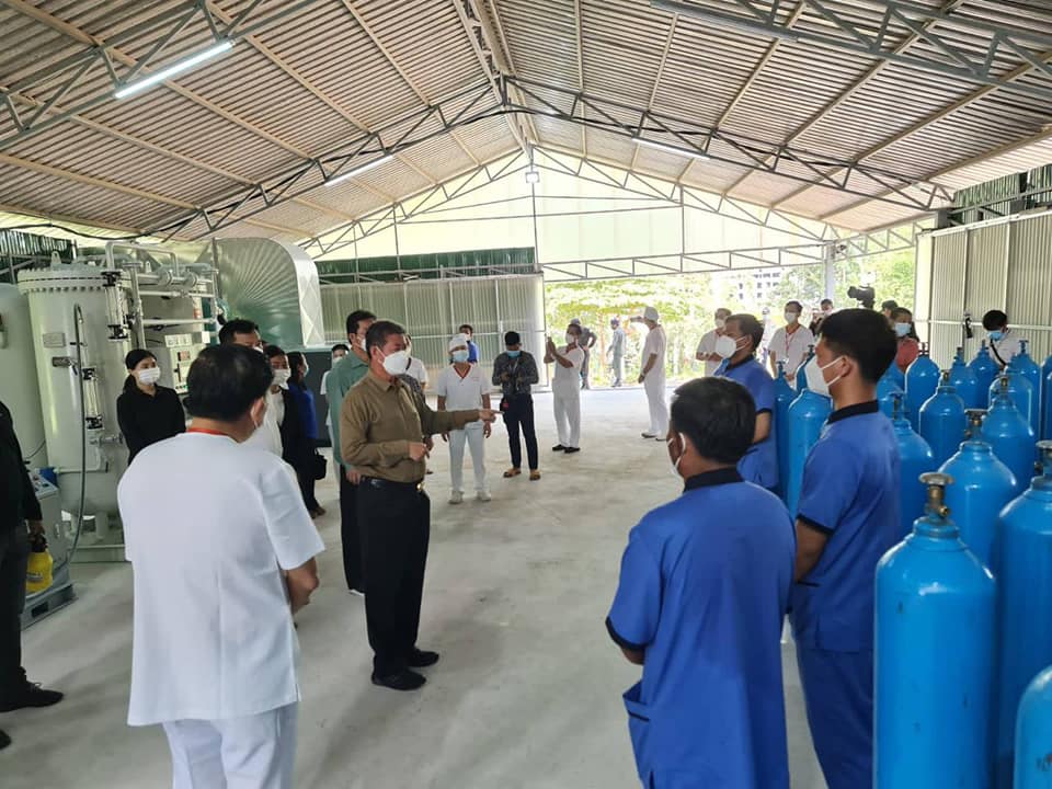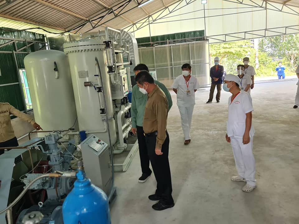 ឯកឧត្តម គួច ចំរើន អភិបាលខេត្តព្រះសីហនុ ចុះត្រួតពិនិត្យម៉ាស៊ីនអុកស៊ីសែន នៅមន្ទីរពេទ្យបង្អែកខេត្ត ដែលមានសមត្ថភាពផលិតខ្យល់អុកស៊ីសែនក្នុងមួយម៉ោង បាន៣៥ ម៉ែត្រគីប
