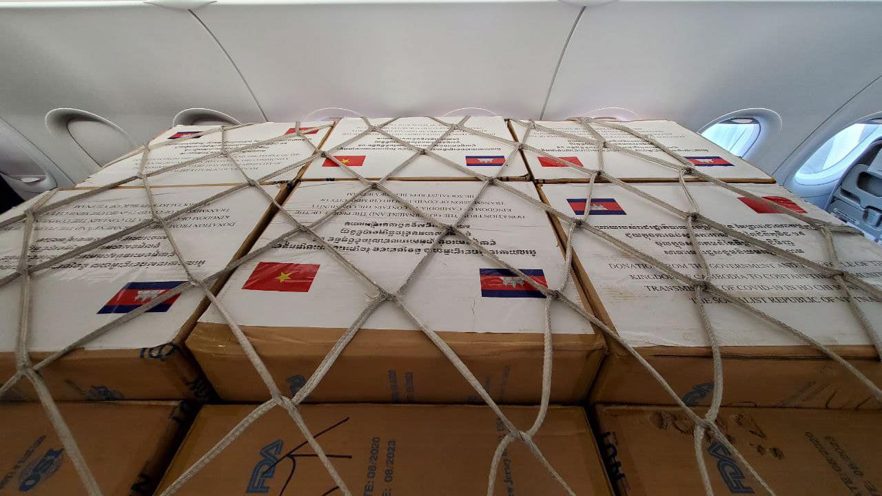 ព្រឹកនេះកម្ពុជា បានដឹកជញ្ជូនអំណោយតាមយន្តហោះពិសេសយកទៅផ្តល់ជូនដល់ប្រទេសវៀតណាម ដើម្បីចូលរួមទប់ស្កាត់ការរីករាលដាលជំងឺកូវីដ-១៩