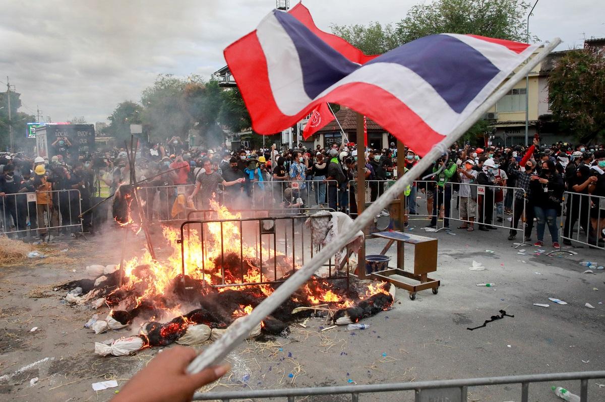 ប៉ូលីសបាននិយាយថា មានមនុស្សប្រហែលជា ១,០០០ នាក់ បានចូលរួមនៅក្នុងការតវ៉ានេះ បើទោះបីជាប្រទេសថៃបានចេញច្បាប់ហាមឃាត់ការប្រមូលផ្ដុំគ្នាលើសពី ៥នាក់ ហើយមានបាតុករខ្លះបានប៉ះទង្គិចជាមួយប៉ូលីសទៀតផង។ អាជ្ញាធរបាននិយាយថា យ៉ាងហោចណាស់មានអ្នកតវ៉ា ២នាក់ បានរងរបួស និងត្រូវបានគេបញ្ជូនទៅមន្ទីរពេទ្យ។ ប៉ូលីសបានប្រើឧស្ម័នបង្ហូរទឹកភ្នែក កាណុងបាញ់ទឹក និងគ្រាប់កាំភ្លើងជ័រដើម្បីបំបែកក្រុមបាតុករ ហើយក្នុងនោះក៏មានបាតុករចំនួន ១៣នាក់ ត្រូវបានចាប់ខ្លួនផងដែរ៕