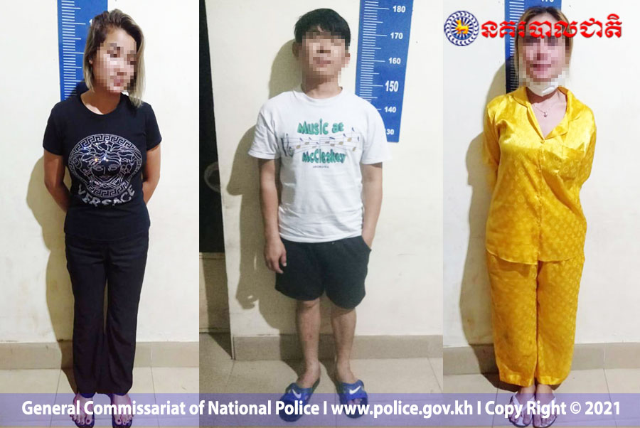 មន្ត្រីនគរបាលបានឲ្យដឹងថា ៖ ជនសង្ស័យទាំង៣នាក់រួមមាន ៖ ១. ឈ្មោះ ឡេង ធាវុធ ភេទប្រុស អាយុ៣៨ឆ្នាំ ជាតិខ្មែរ មុខរបរ មេការបន្ទប់ជួល ។ ២. ឈ្មោះ អាត សំអូន ភេទស្រី អាយុ២៨ឆ្នាំ ជាតិខ្មែរ មុខរបរនៅផ្ទះ ។ ៣. ឈ្មោះ ប្រុស ស្រីនា ហៅ ស្រីថៃ ភេទស្រី អាយុ៣៤ឆ្នាំ ជាតិខ្មែរ មុខរបរនៅផ្ទះ ។