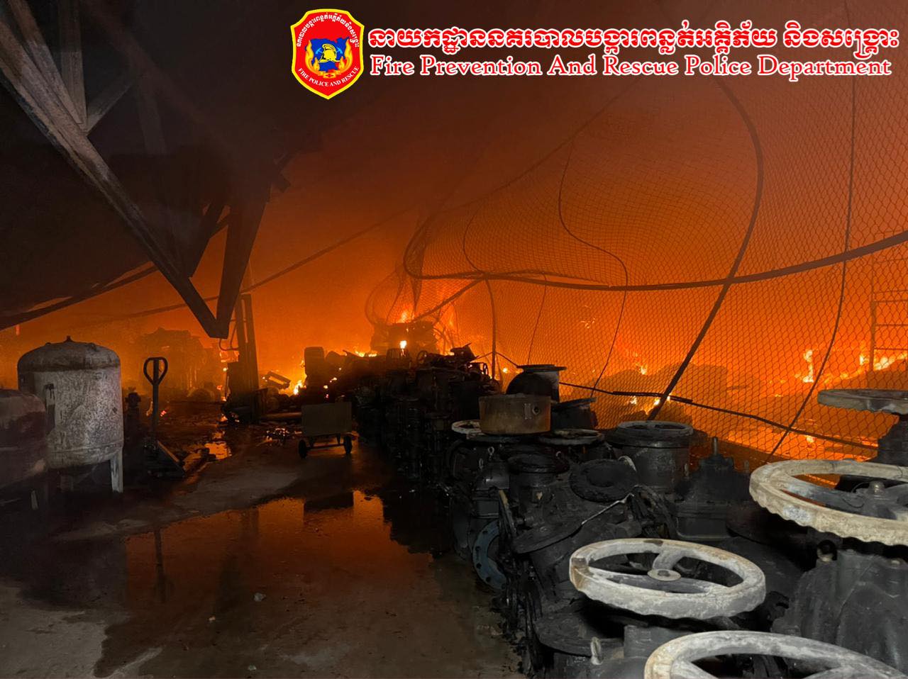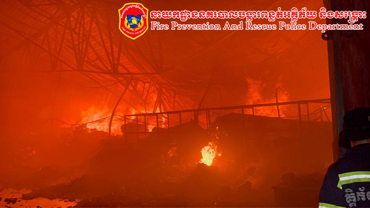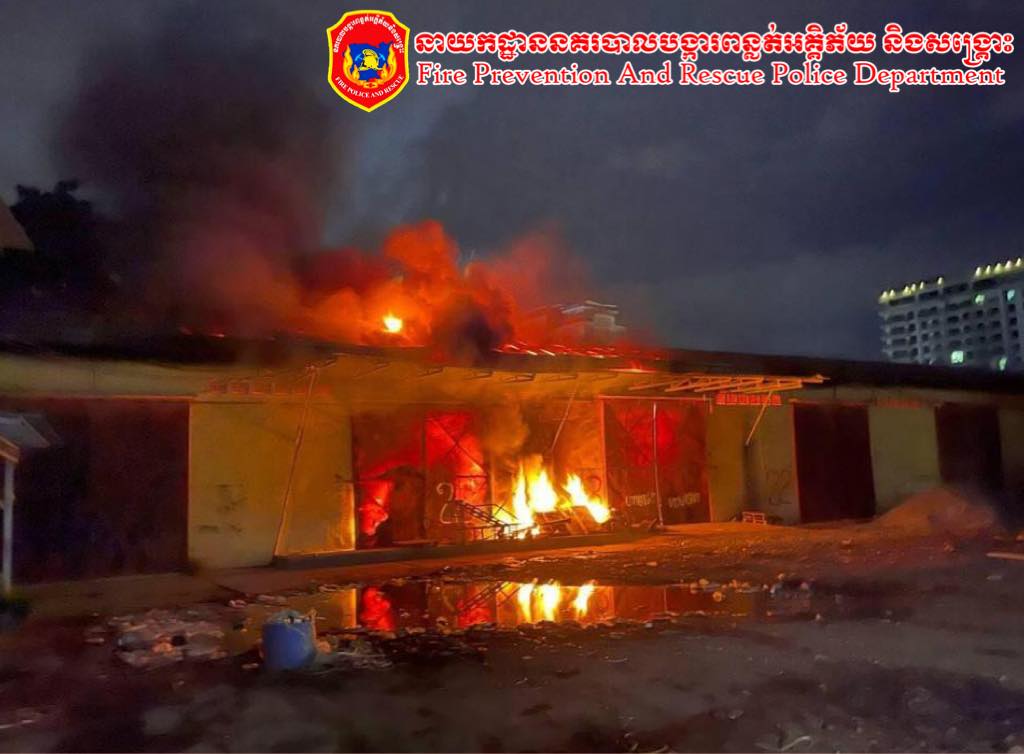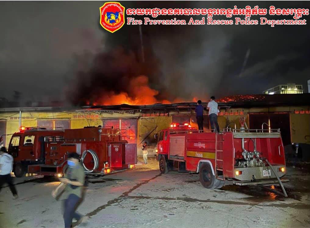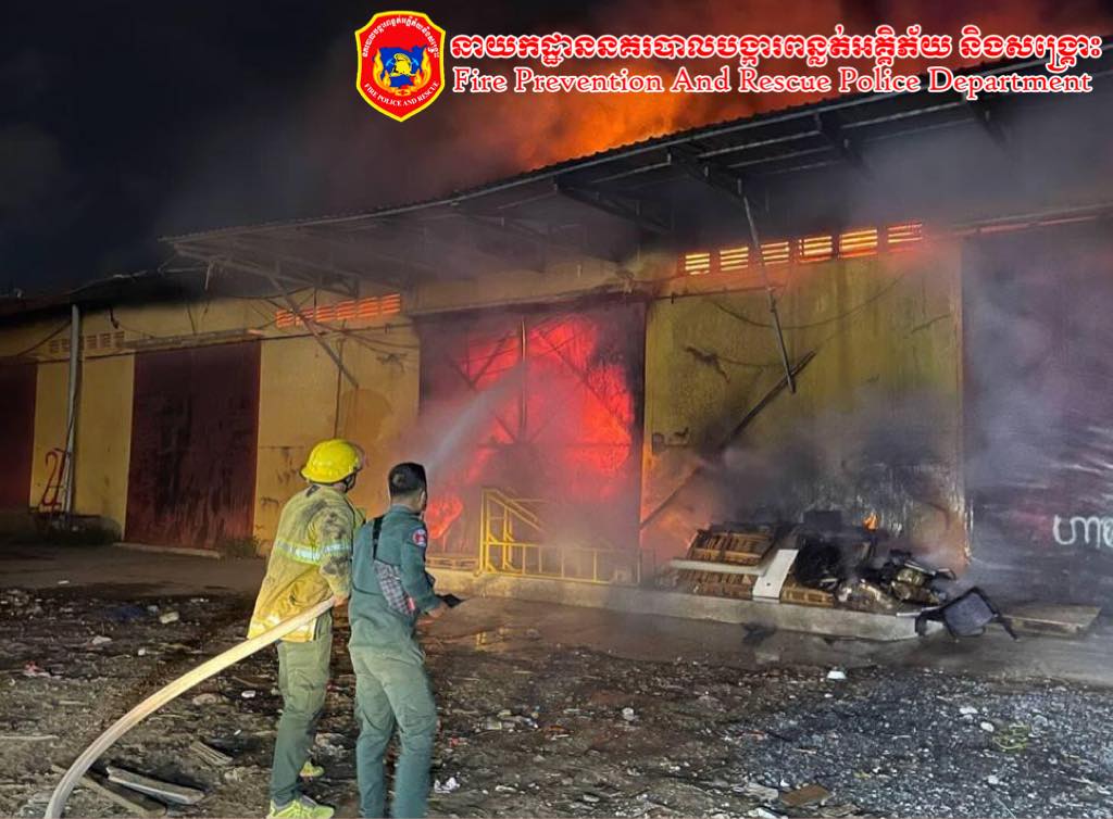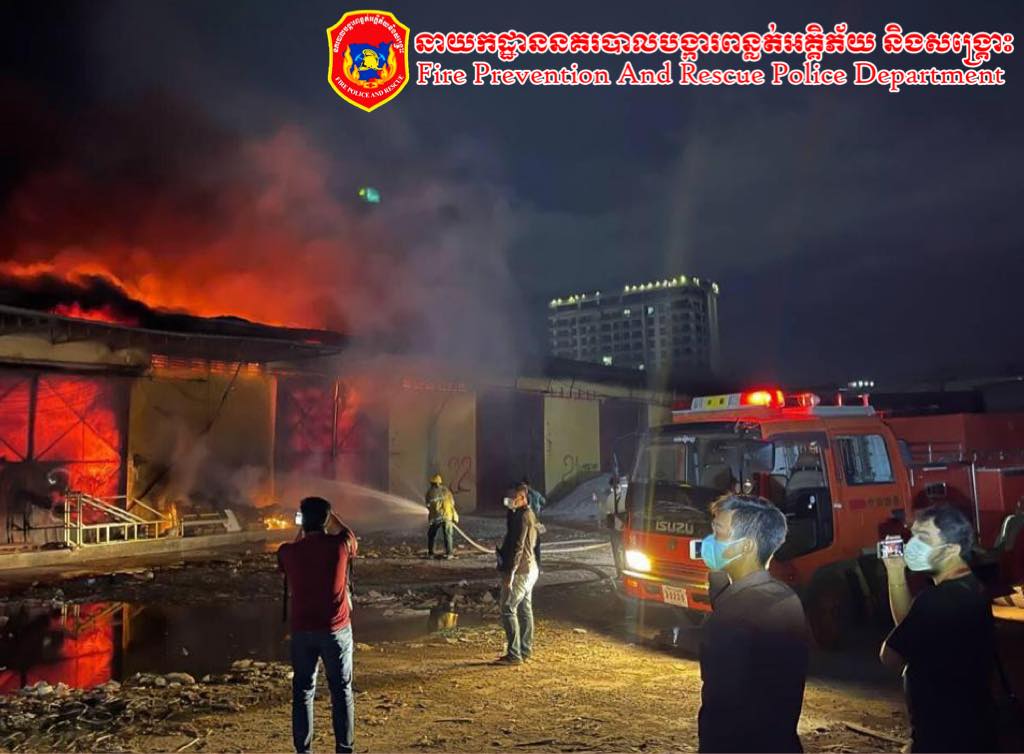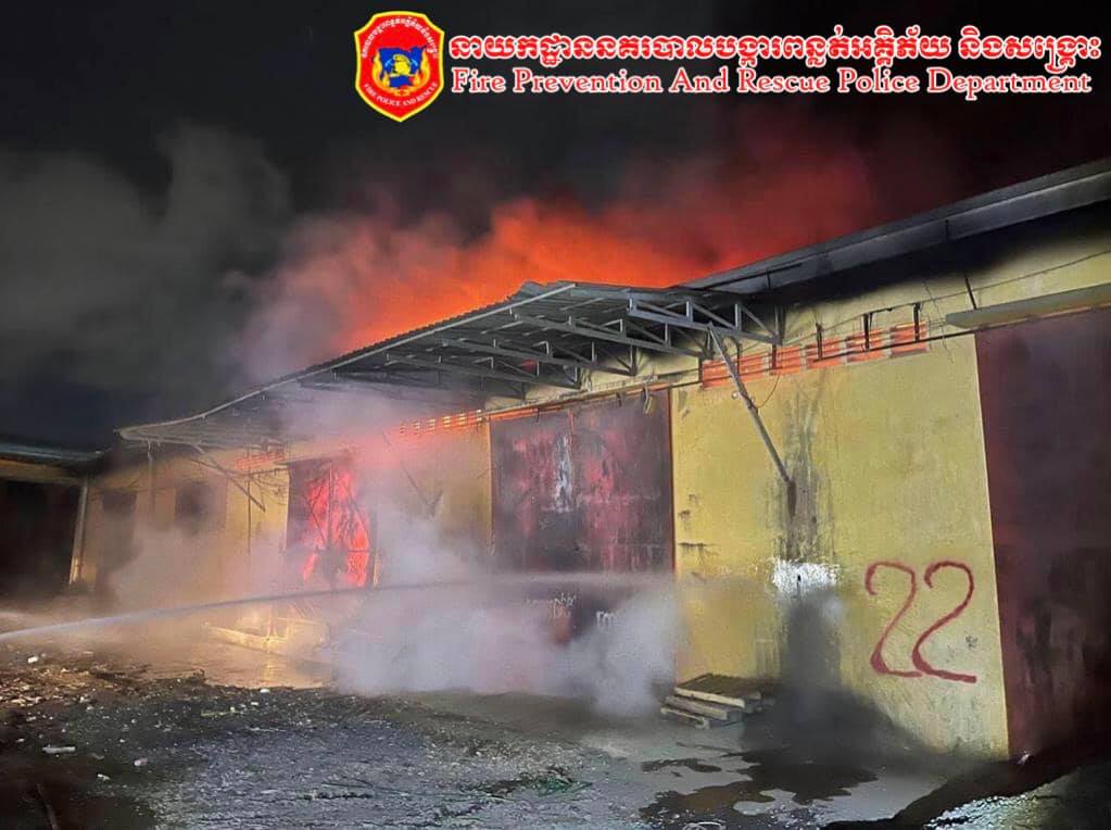 អគ្គីភ័យឆាបឆេះ ឃ្លាំងទំនិញទំហំ ៣០ម៉ែត្រ x ៨០ម៉ែត្រ ឆេះទាំងទំនិញស្តុកទុកក្នុងឃ្លាំងអស់ទាំងស្រុង ផ្អើលទាំងយប់