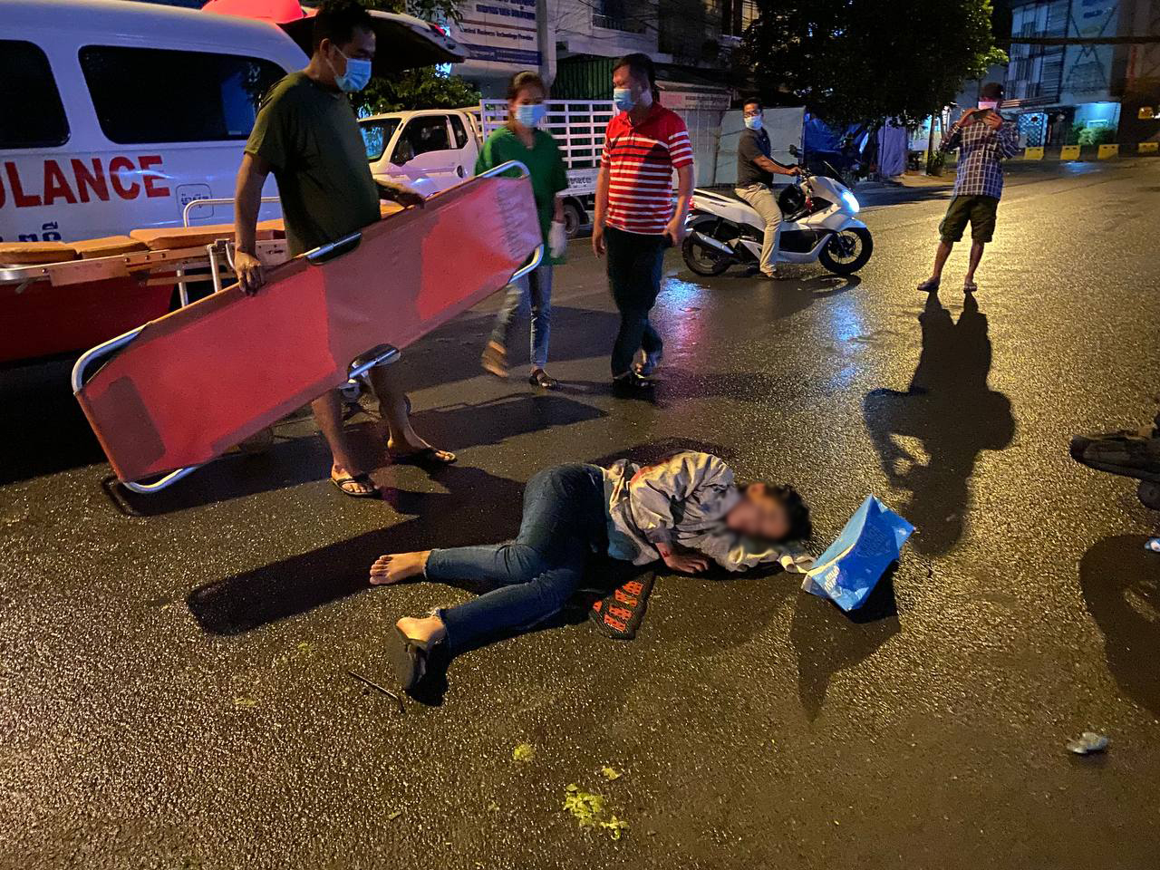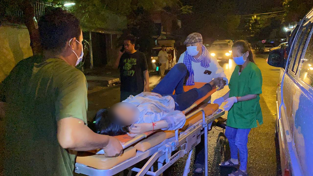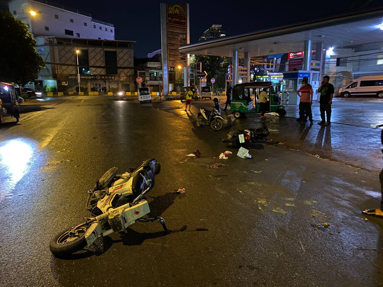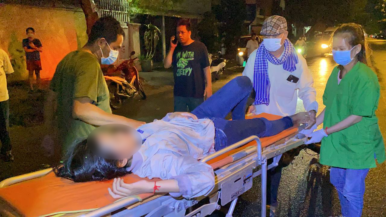 រាជធានីភ្នំពេញ ៖ បុរសនារីជាសង្សារនឹងគ្នា ខាងស្រីរងរបួសដេកដួលនឹងថ្នល់ ខាងប្រុសរងរបួសជើង បន្ទាប់ពីជិះម៉ូតូឌុបគ្នាតាមផ្លូវទៅបុកជាមួយម៉ូតូឆាលីមួយគ្រឿងទៀត បណ្ដាលឲ្យដួលរងរបួសទាំង៣នាក់ ។ ហេតុការណ៍គ្រោះថ្នាក់ចរាចរណ៍នេះបានកើតឡើងកាលពីវេលាម៉ោង០៨:៤០នាទីយប់ ថ្ងៃសៅរ៍ ទី២៤ ខែកក្កដា ឆ្នាំ២០២១នេះ នៅចំណុចស្ថានីយប្រេងឥន្ទនៈសូគីម៉ិច(ក្បាលមាន់ចែ) ខាងលិចស្នាក់ការប៉ុស្តិ៍ផ្សារដើមគ ផ្លូវលេខ២៣០ សង្កាត់ផ្សារដើមគ ខណ្ឌទួលគោក រាជធានីភ្នំពេញ ។