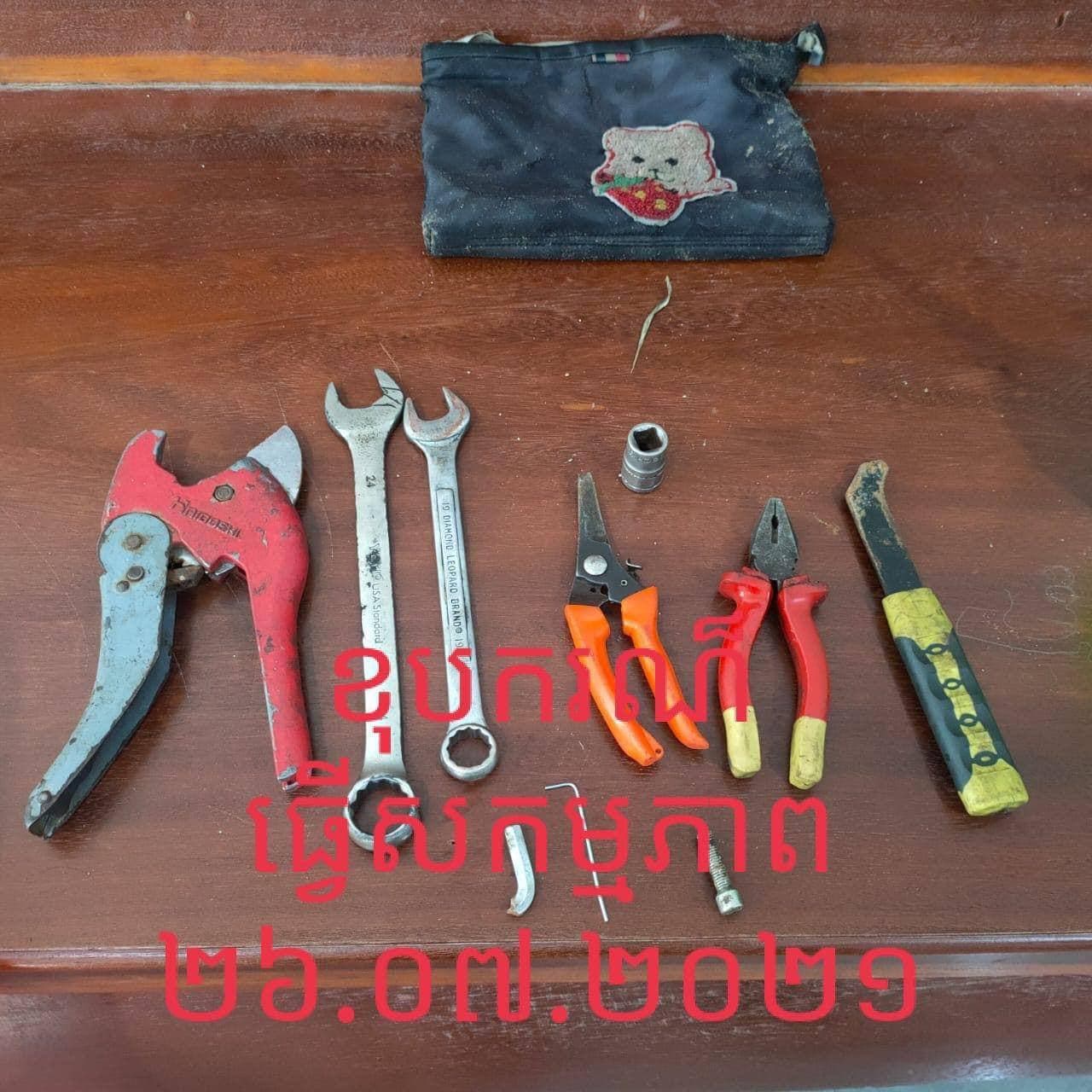 ទី១.ដែកដង្កាប់ចំនួន ០១, សោរលេខ១៩, សោរលេខ២៤ ចំនួន០២ដើម, ក្បាលលេខ១៧ ចំនួន ០១ដើម