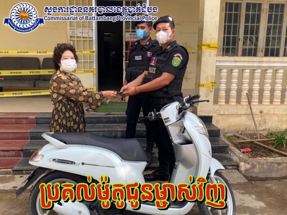 សូមជម្រាបជូនថាកាលពីថ្ងៃទី២៨ ខែកក្កដា ឆ្នាំ២០២១ វេលាម៉ោងប្រហែល ១៤និង៣០នាទី នៅចំណុចផ្ទះរបស់ជនរងគ្រោះ ឈ្មោះ លីន បូរុំ ភេទស្រី អាយុ ៥៥ឆ្នាំ មានទីលំនៅ ភូមិកម្មករ សង្កាត់ស្វាយប៉ោ ក្រុងបាត់ដំបង ខេត្តបាត់ដំបង ជនសង័្សយមិនស្គាល់អត្តសញ្ញាណបានលួចយកម៉ូតូមួយគ្រឿងម៉ាកហុងដាស្កុបពី ពណ៌ស ស៊េរីឆ្នាំ២០២០ ពាក់ស្លាកលេខ បាត់ដំបង 1AJ-642 5 ទៅបាត់។