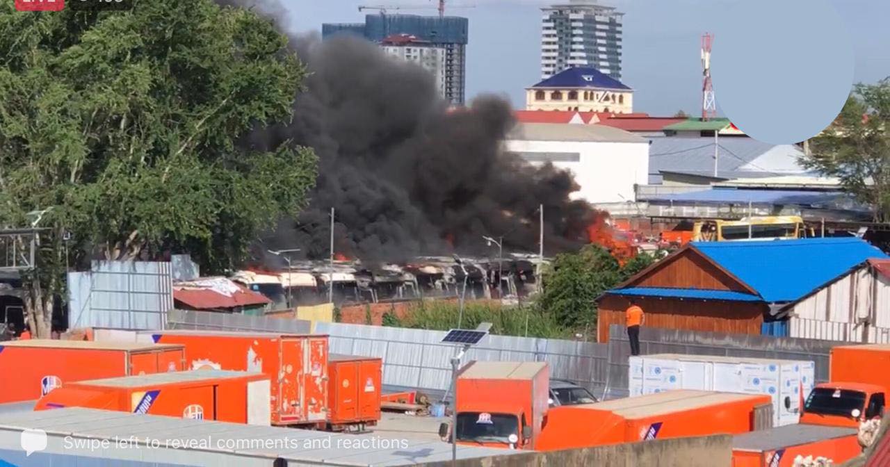 អគ្គិភ័យកំពុងឆាបឆេះរថយន្តក្នុងចំណតរបស់ក្រុមហ៊ុនវីរៈប៊ុនថាំ នៅខាងកើតគល់ស្ពានជ្រោយចង្វារ​ ពេលនេះរថយន្តពន្លត់អគ្គិភ័យជាច្រើនកំពុងជួយអន្តរាគមន៍