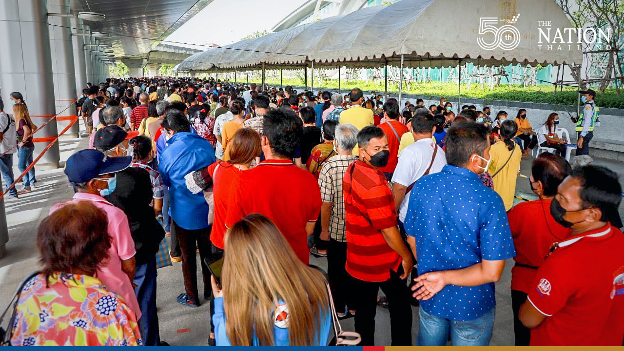 ស្ថានការណ៍កាន់តែអាក្រក់, ពលរដ្ឋថៃច្រើនជាង ១ម៉ឺននាក់ ដែលភាគច្រើនមានវ័យចំណាស់និងមកពីតាមបណ្ដាខេត្ត ត្រូវធ្វើដំណើរមកចាំទទួលវ៉ាក់សាំងបង្ការជំងឺកូវីដ១៩ ថ្ងៃចុងក្រោយនៅទីក្រុងបាងកក
