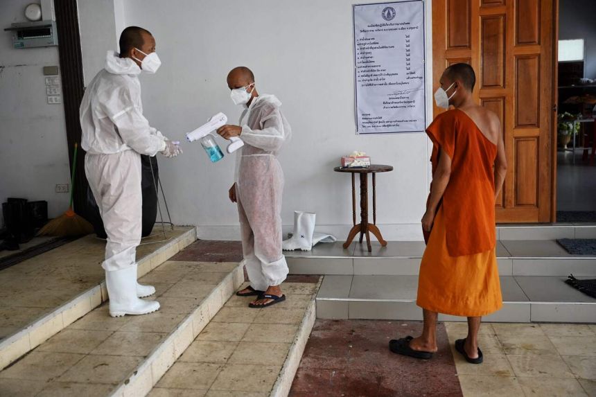 ថៃ៖ ខណៈដែលជំងឺកូវីដ ១៩ កាន់តែរាតត្បាតខ្លាំងឡើងៗ​នៅទូទាំងប្រទេសថៃនោះគេបានសង្កេតឃើញថា មានព្រះសង្ឃថៃជាច្រើនអង្គបានគ្រងឈុតការពារមេរោគ PPE ពីលើស្បង់ចីពររបស់ព្រះអង្គដើម្បីចូលរួមជួយកិច្ចការមួយចំនួនជាមួយនឹងក្រុមបុគ្គលិកសុខាភិបាលថៃដែលកំពុងតែមមាញឹកយ៉ាងខ្លាំងក្នុងការជួយសង្គ្រោះអ្នកជំងឺកូវីដ ១៩ ។ បើតាមការចុះផ្សាយនៅក្នុងសារព័ត៌មាន RFI បានបញ្ជាក់ថា កិច្ចការដែលព្រះសង្ឃថៃអាចជួយដល់ក្រុមបុគ្គលិកសុខាភិបាលនោះមានដូចជា ជួយយកសំណាកពីប្រជាពលរដ្ឋដើម្បីធ្វើតេស្តរកជំងឺកូវីដ ១៩ ជួយចែកចាយបំពង់ខ្យល់អុកស៊ីសែន និងជួយយកសាកសពអ្នកជំងឺកូវីដ ១៩ ទៅបូជាជាដើម។