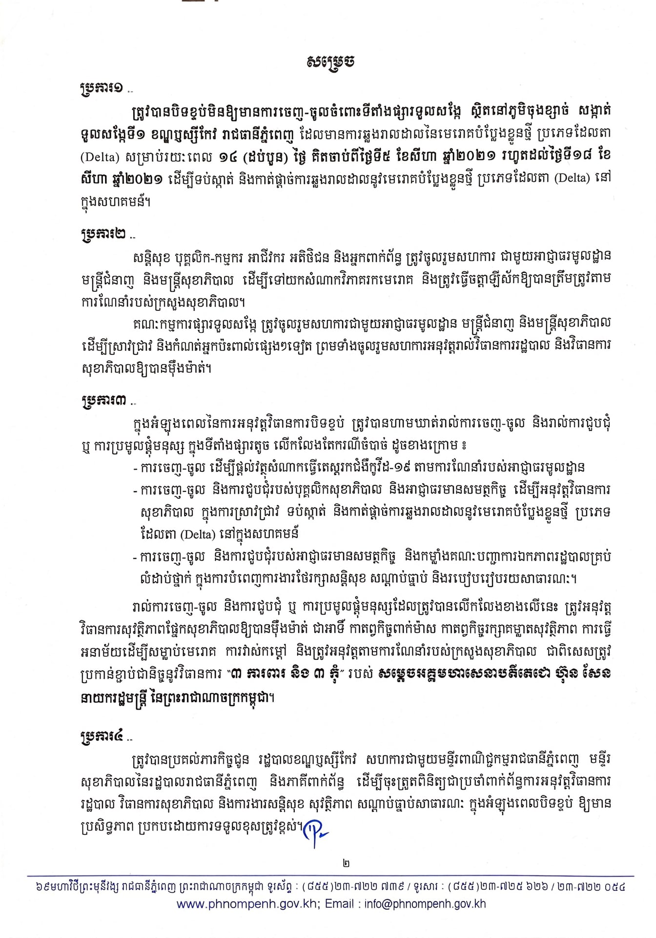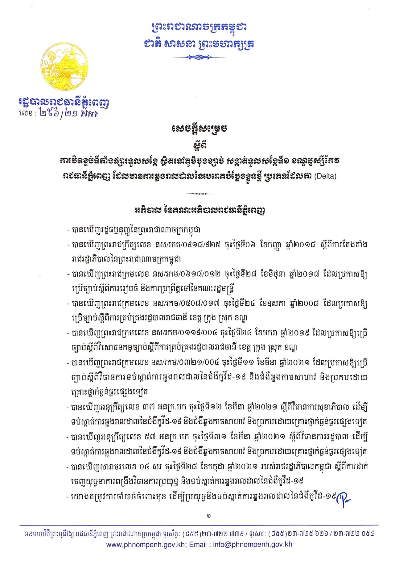 Breaking News – រដ្ឋបាលរាជធានីភ្នំពេញ សម្រេចបិទខ្ទប់ផ្សារទួលសង្កែ ដែលមានការឆ្លងរាលដាលមេរោគបំប្លែងខ្លួនថ្មី ប្រភេទដែលតា (Delta)