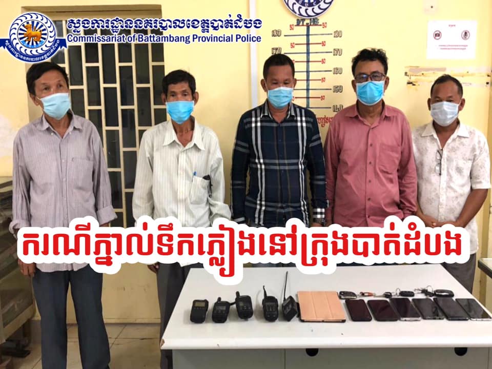 សមត្ថកិច្ចចុះបង្ក្រាបករណីល្បែងស៊ីសងភ្នាល់ទឹកភ្លៀងឃាត់ខ្លួនបានចំនួន ០៥នាក់និងដកហូតវត្ថុតាងមួយចំនួន នៅក្រុងបាត់ដំបង