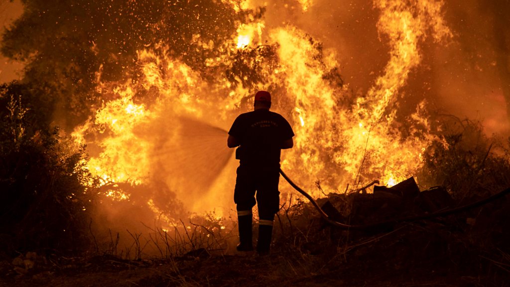 ភ្លើងឆេះព្រៃដ៏ធំមួយនៅលើកោះ Evia នៃសមុទ្រ Aegean របស់ប្រទេសក្រិច បានបំផ្លាញផ្ទះប្រជាពលរដ្ឋរាប់រយខ្នង និងបានបង្ខំឱ្យមានការជម្លៀសប្រជាជនរាប់ពាន់នាក់ចេញពីកោះ បន្ទាប់ពីប្រទេសនេះបានប្រឈមនឹងរលកកម្ដៅដ៏អាក្រក់បំផុត ក្នុងរយៈពេលបីទសវត្សរ៍ចុងក្រោយនេះ។ ប្រទេសក្រិចក្នុងប៉ុន្មានសប្ដាហ៍ចុងក្រោយនេះ បានប្រឈមនឹងអគ្គិភ័យទូទាំងប្រទេស ខណៈអាកាសធាតុបានហក់ឡើងរហូតដល់ ៤០ អង្សាសេ។