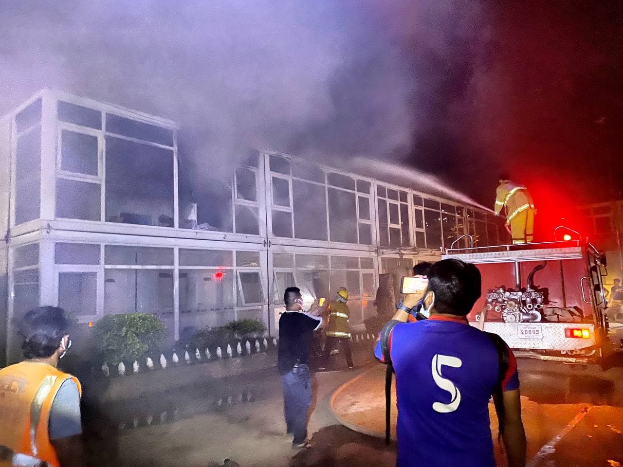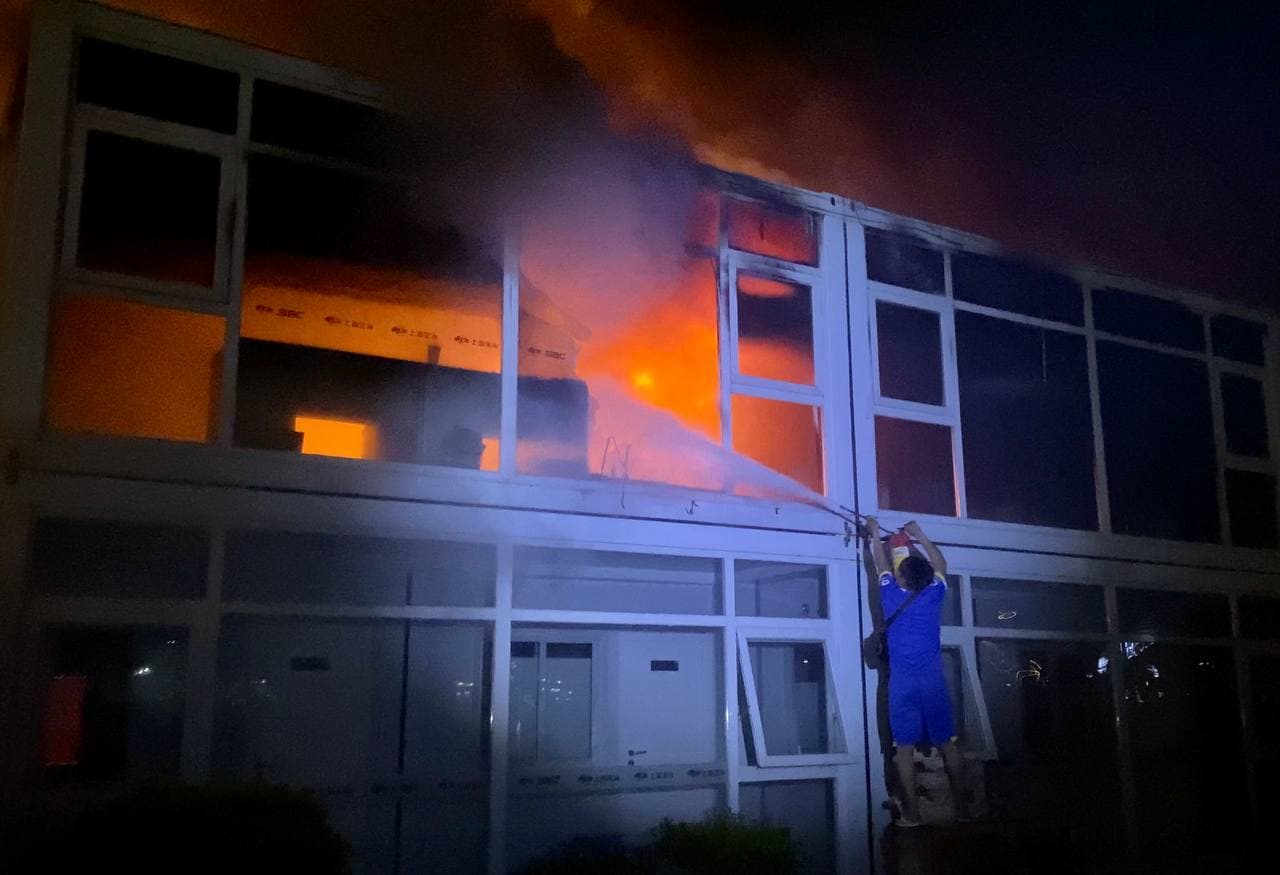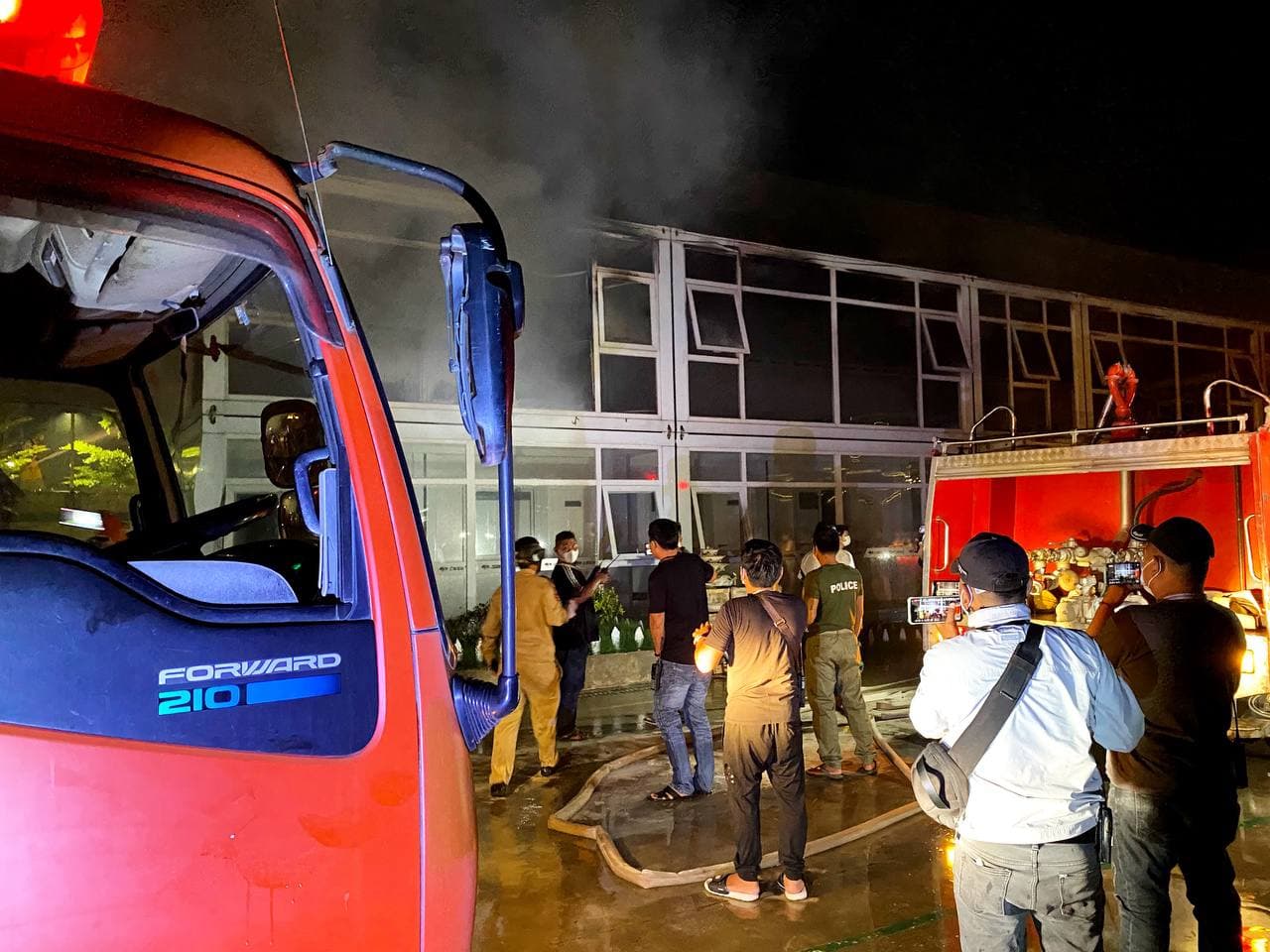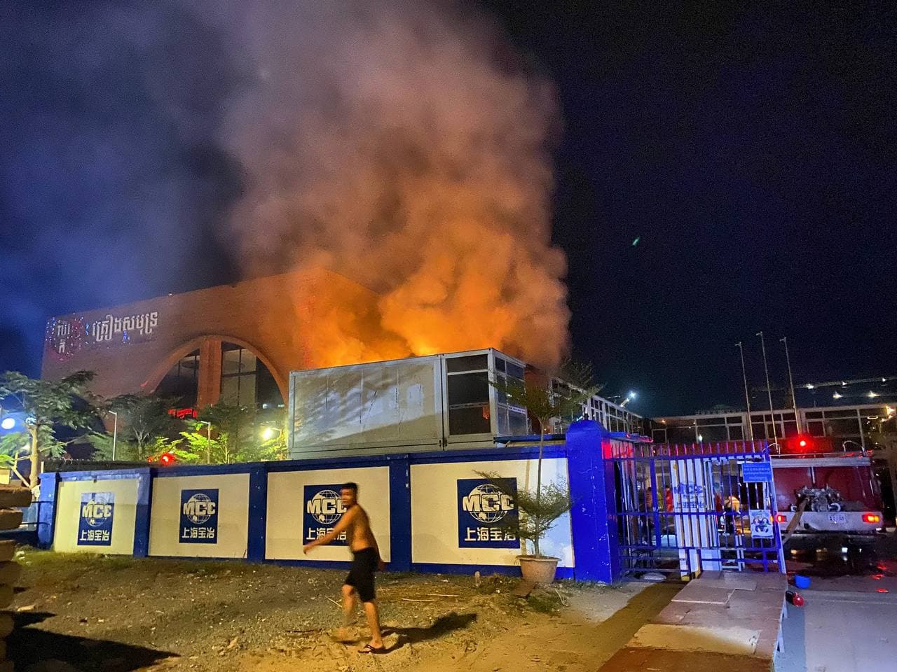 រាជធានីភ្នំពេញ៖ ករណីអគ្គិភ័យឆេះបន្ទប់ ការិយាល័យ ក្រុមហ៊ុនសំណង់ចិន “MCC” បង្កការភ្ញាក់ផ្អើលដល់សន្តិសុខនាំគ្នាយកបំពង់ពន្លត់អគ្គិភ័យជាច្រើនបំពង់បាញ់ពន្លត់ តែមិនរលត់ក៏រាយការណ៍ប្រាប់សមត្ថកិច្ចប៉ុស្តិ៍ចាក់អង្រែលើ ហៅរថយន្តពន្លត់អគ្គិភ័យជាច្រើនគ្រឿង មកជួយអន្តរាគមន៍ បាញ់ពន្លត់ ស្ថិតនៅដីឡូត៍គ្មានលេខ ក្នុងភូមិព្រែកតានូ តាមបណ្ដោយផ្លូវ៦០ម៉ែត្រ សង្កាត់ចាក់អង្រែលើ ខណ្ឌមានជ័យ រាជធានីភ្នំពេញ កាលពីវេលាម៉ោង១០៖៣០នាទីយប់ ថ្ងៃទី១៧ ខែសីហា ឆ្នាំ២០២១នេះ។