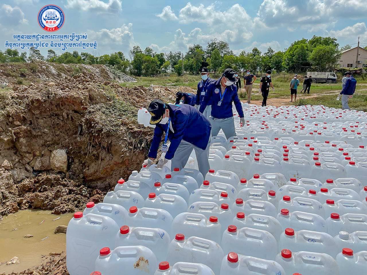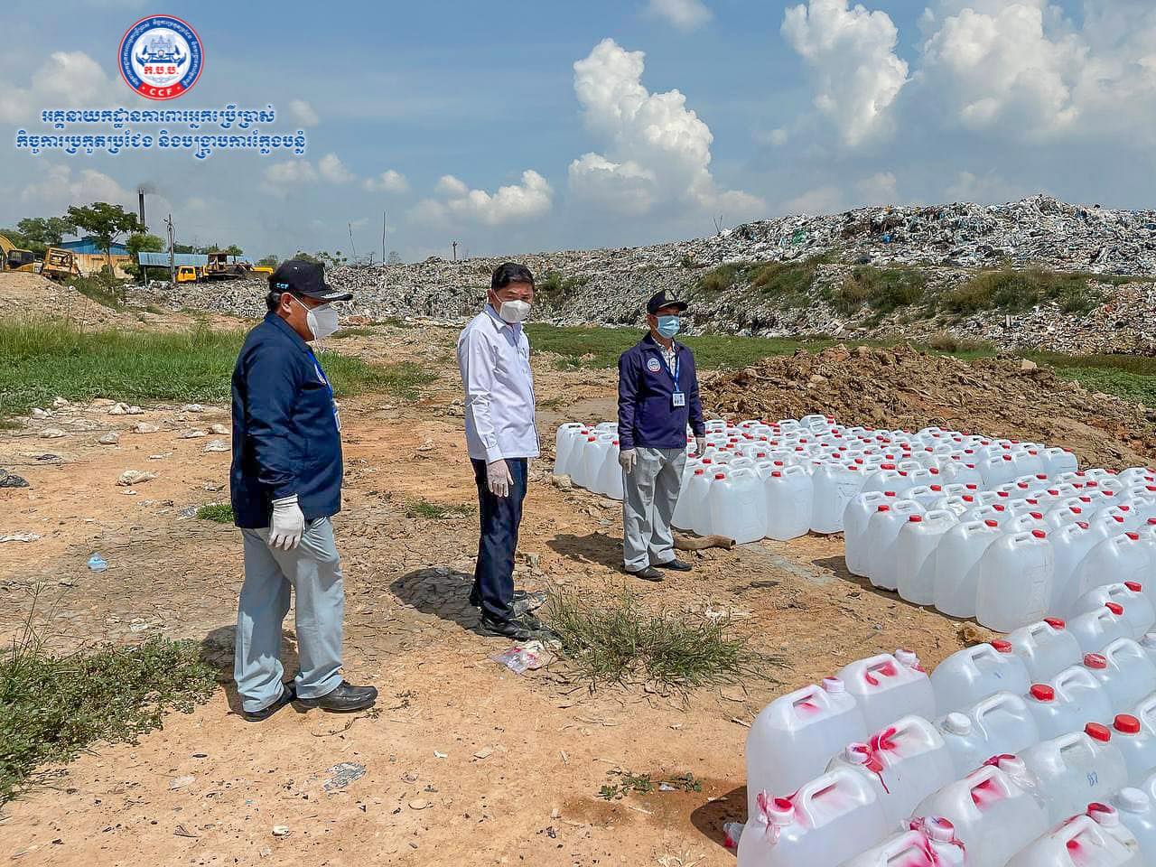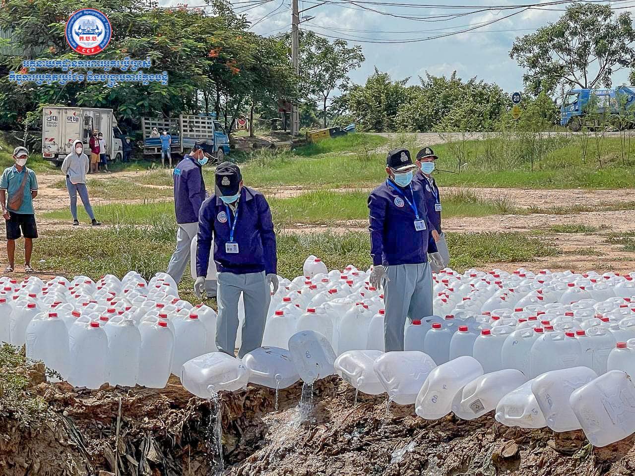 អាល់កុលក្លែងក្លាយប្រមាណ ២១តោន ដែលដកហូតពីទីផ្សារកន្លងមកត្រូវបានកម្ទេចចោលនៅទីលានចាក់សំរាម ខណ្ឌដង្កោ