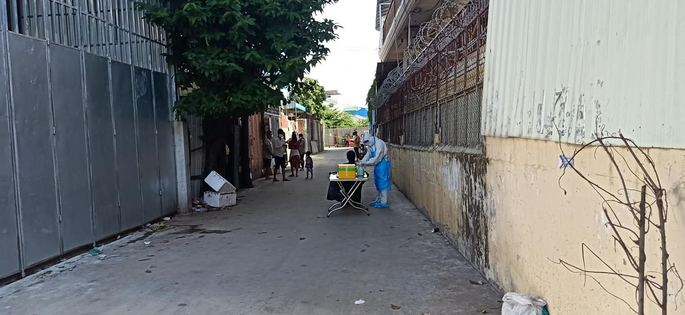 ចុះយកសំណាកពលរដ្ឋ១១នាក់ ដែលពាក់ព័ន្ធអ្នកវិជ្ជមានកូវីដ-១៩ បំប្លែងថ្មី្ម ដែលតា នៅសង្កាត់ស្ទឹងមានជ័យទី១